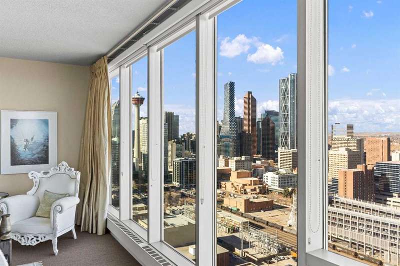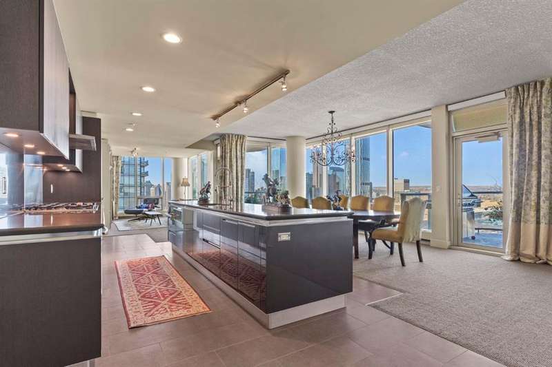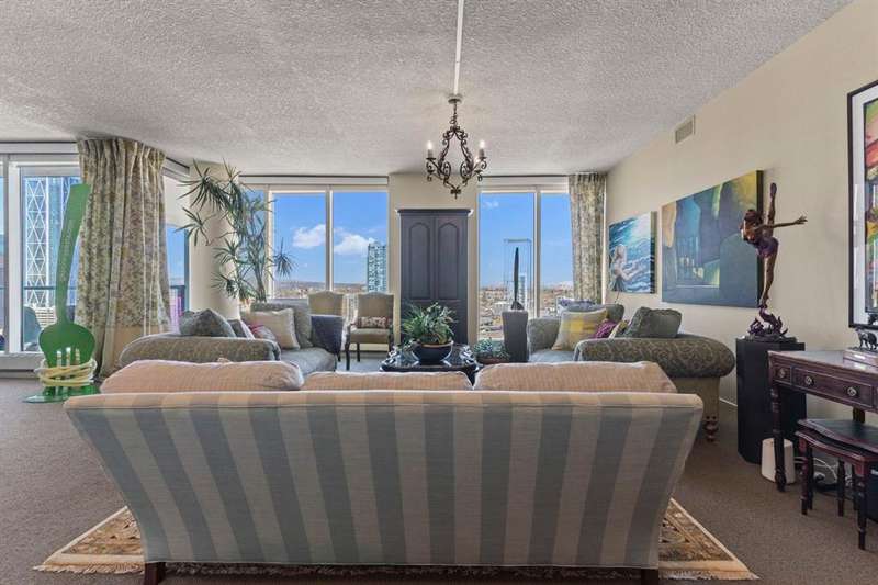 Experience luxury living in this MASSIVE residence in the highly sought after Arriva building. Enjoy complete exclusivity with your own private high-speed elevator. Floor-to-ceiling windows draw in natural light and provide panoramic views of the city and Bow river. This executive home with a sprawling floor plan makes it ideal for entertaining and hosting gatherings. The state-of-the- art kitchen features a full Miele luxury appliance package, and an expansive island that seamlessly opens to the dining room with direct access to one of three balconies where you can take in the iconic views of downtown. Adjacent to the kitchen is an intimate family room with built in cabinetry a warm fireplace and another private balcony. On the opposite side of the kitchen and dining is generous living room providing ample space for gathering and more spectacular views! A private office with built in storage and a powder room are tucked in and away. The primary is a true sanctuary with unmatched views, a balcony overlooking the serene river, an expansive walk-in closet with built ins. This is complete with a spa inspired 5PC ensuite and access to your own home gym, or space for a private dressing room or yoga space. The secondary bedroom has a custom murphy bed, walk in closet, and its own 4PC ensuite providing a private retreat for family or guests. Experience this perfect blend of luxury and privacy. The Arriva building offers 24-hour security and concierge services, two guest suites, a rooftop garden, an owner’s lounge, central A/C, and secure access. Exceptional executive living located in the vibrant Beltline area, steps from Stampede grounds, the new rink, river pathways, restaurants, cafés, central library and LRT access. View the virtual tour or schedule your private showing today!