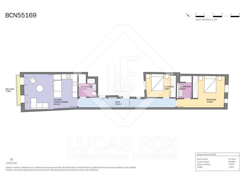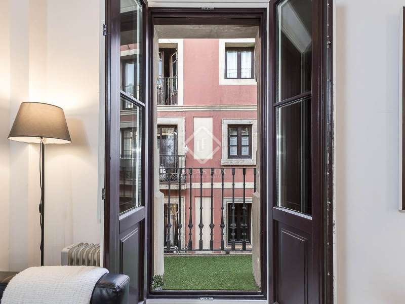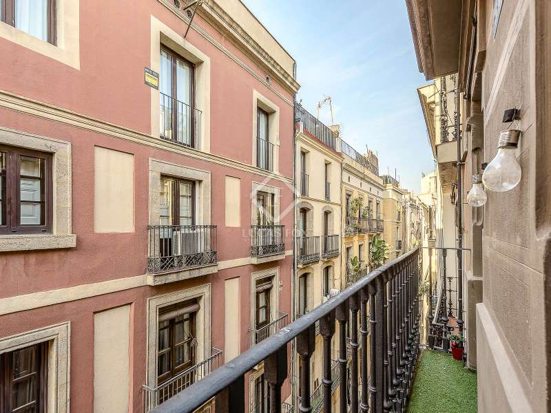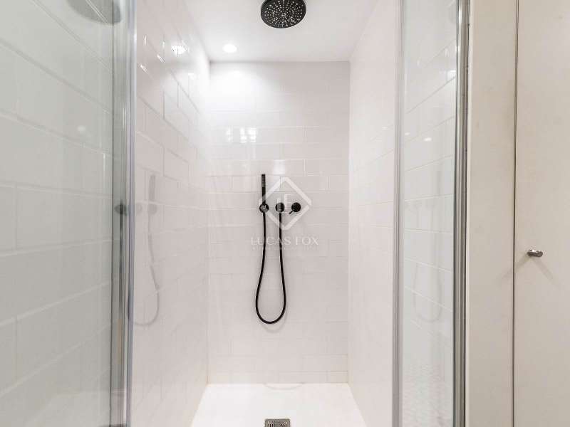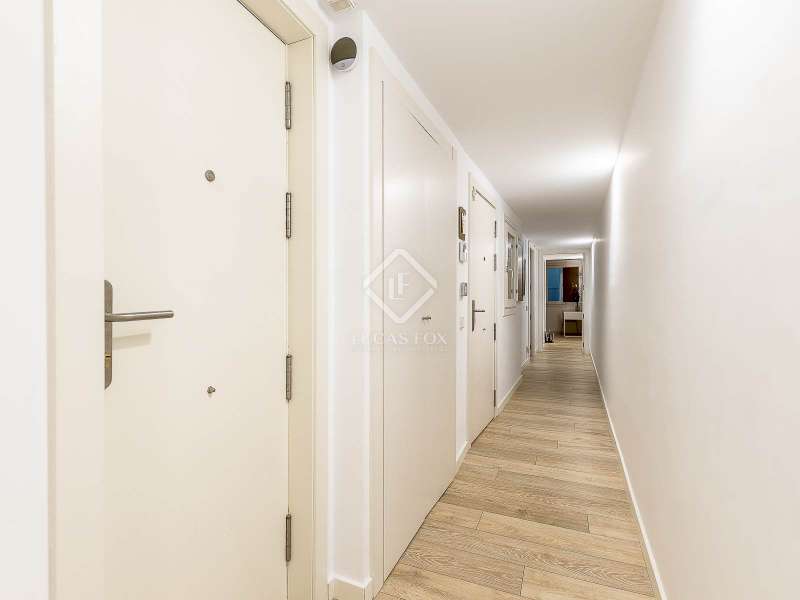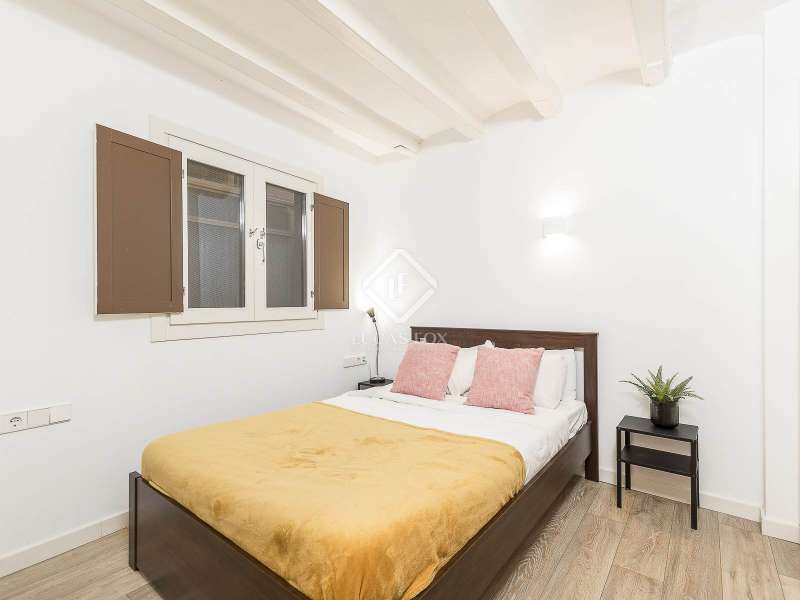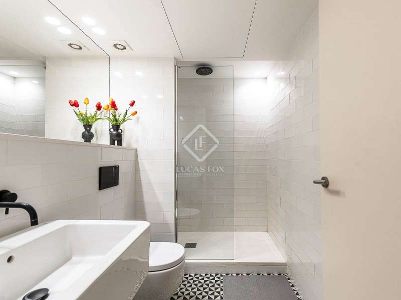 This charming apartment offers two double bedrooms and two complete bathrooms, as well as a breathtaking open-plan kitchen and living area with direct access to the balcony. The apartment was meticulously renovated just a couple of years ago with excellent taste and in neutral colours, while preserving the historical features, such as Catalan vaulted ceilings and wooden beams. These features provide a touch of history along with the contemporary minimalistic design. Being situated on one of the highest floors of the building offers light in the living and dining area as well as a complete tranquility. The building dates back to 1900 and offers only a few apartments, therefore, providing great privacy as there is only 1 apartment per floor. The large, modern lift leads us almost directly to the apartment with a key. Alternatively, the apartment may also be accessed via the stairs. This simple yet modern apartment offers all necessities, such as air conditioning and heating via ducts, equipped kitchen with dishwasher, as well as washer and dryer, all meticulously incorporated in the built-in cupboards. Being chic and modern, this beautiful apartment may be an excellent fit for individuals, couples and even for investors.