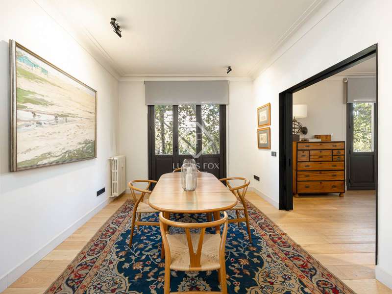 Lucas Fox exclusively presents this wonderful apartment in a classic building on Avenida Diagonal - Timeless elegance in the heart of Barcelona Exclusive property located in an elegant, classic building with character on Avenida Diagonal, one of Barcelona's most iconic and sought-after areas . With an excellent combination of contemporary design, functionality, and high-quality materials, this property offers a sophisticated and welcoming atmosphere, ideal for both living and investment. The property, fully renovated with the highest quality materials, features a spacious day area with a bright living-dining room with large windows that allow natural light to enter throughout the day, an ideal space to enjoy comfort and sophistication during family or social gatherings. The separate kitchen, fully equipped with premium integrated appliances , is both functional and aesthetically impeccable, providing a very pleasant and relaxing view. In the night area, we find three comfortable exterior bedrooms, with built-in wardrobes and exquisite finishes, including a spacious master suite with a private full bathroom , dressing room, and carefully designed details. The apartment also features another full bathroom with refined, contemporary finishes, an area with a washer and dryer, and another single room perfect as a study. Moldings, parquet floor , modern woodwork, a small balcony overlooking Diagonal, and air conditioning. La Finca has an elevator and concierge service. This property is completed by a convenient parking space in the nearby parking lot. An exceptional property for those looking to live in one of the city's most iconic and well-connected enclaves, surrounded by amenities, shops, and a vibrant cultural attractions .