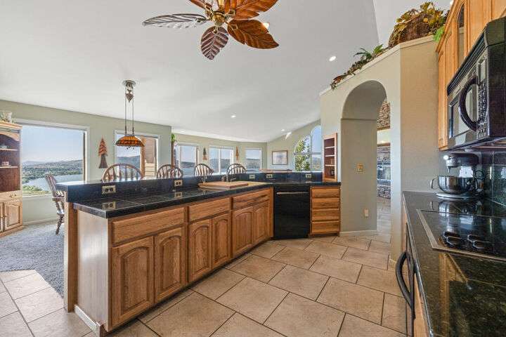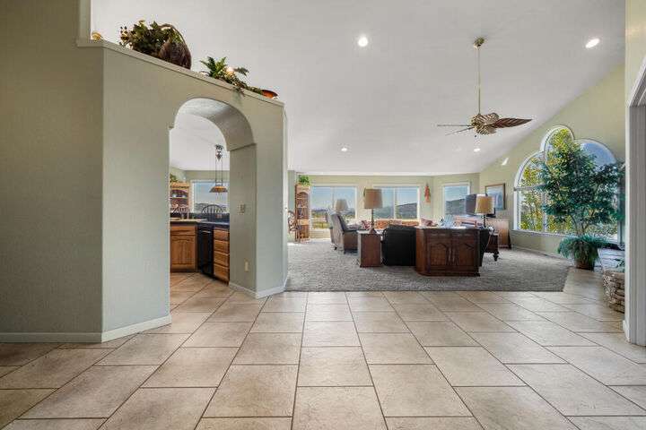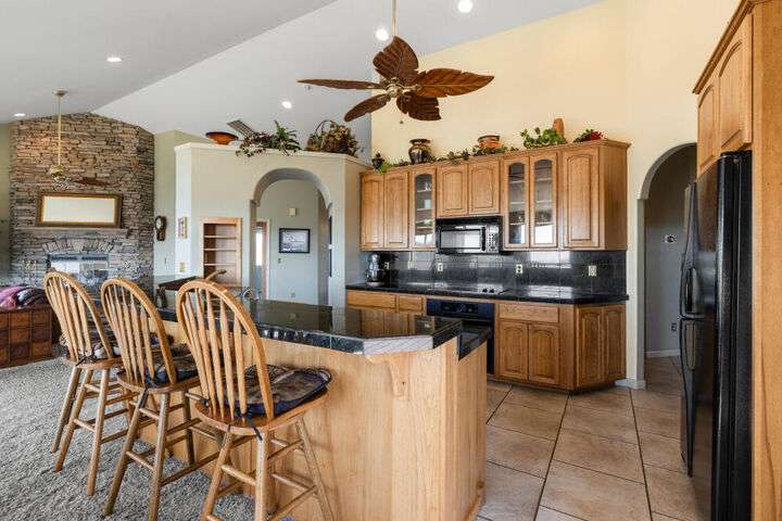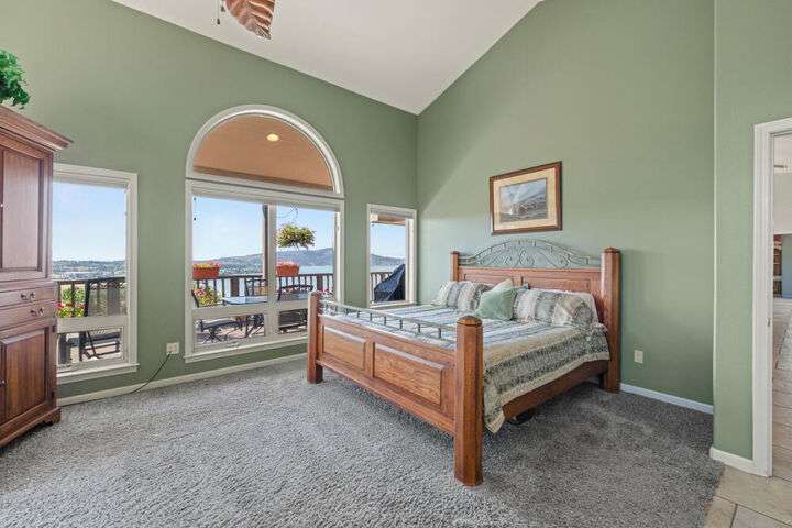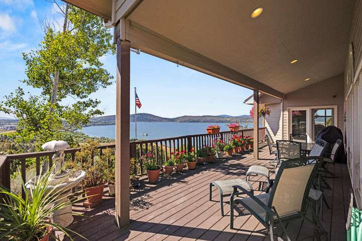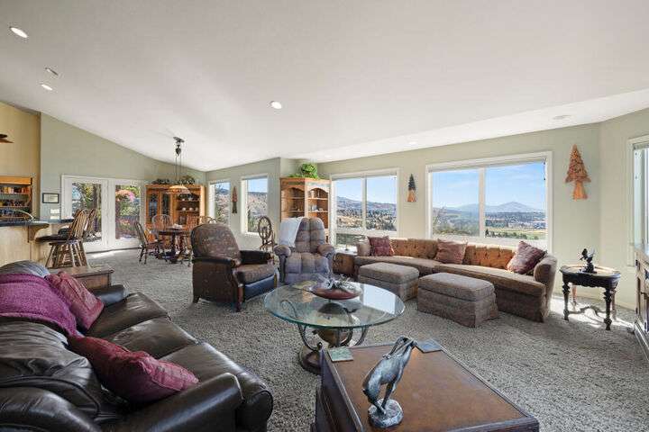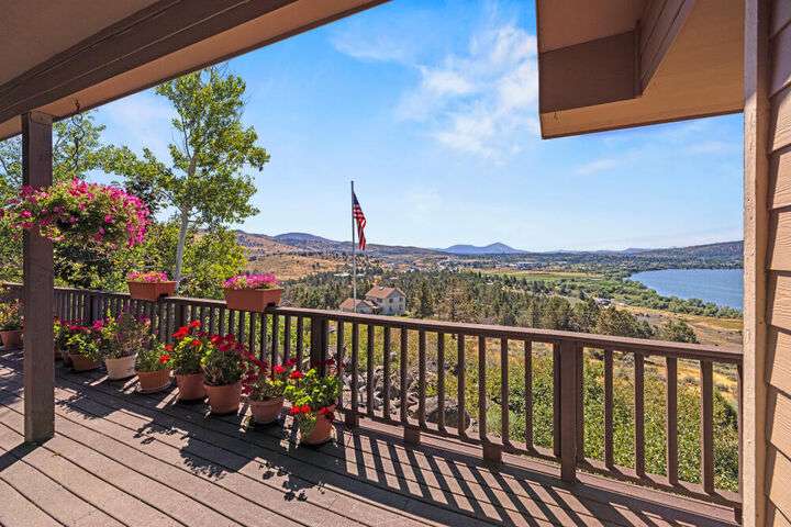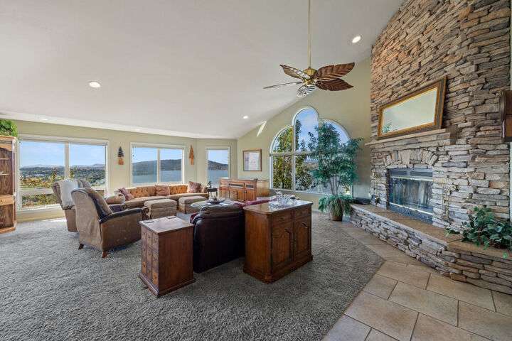 Beautiful open-concept home on sought-after Sunset Ridge with expansive, panoramic views of Upper Klamath Lake and unforgettable sunsets. Situated on a private 5-acre parcel with natural, low-maintenance landscaping, this home combines privacy and convenience—just minutes to town and the medical center. Inside, enjoy an open-concept great room with vaulted ceilings and a gorgeous wood-burning fireplace. The kitchen features granite tile counters, tile flooring, breakfast bar, and a large walk-in pantry. Primary suite on the main level, with two additional bedrooms (one used as an office) plus a spacious bonus room above the 3-car garage. Step out to a covered deck and soak in the views or unwind in the hot tub. Lots of storage and just incredible views from almost any room!