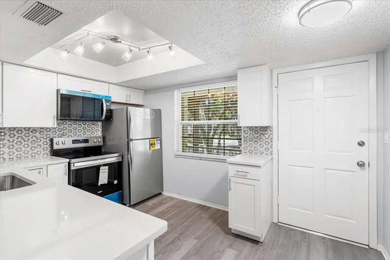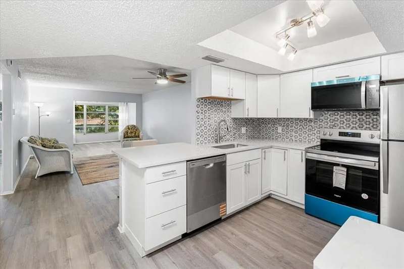 Welcome home to this beautifully updated 2 bedroom, 1 bath second floor condo nestled in the heart of charming Dunedin, Florida. Step inside to discover a spacious, light-filled living area with modern finishes throughout, including luxury vinyl plank flooring and fresh neutral paint. The remodeled kitchen features sleek cabinetry, new stainless steel appliances, and a convenient breakfast bar – perfect for enjoying your morning coffee. The primary bedroom offers generous closet space and tranquil views, while the updated bathroom boasts contemporary fixtures and stylish tile work. Located in a quiet, well-maintained community just minutes from vibrant downtown Dunedin, you'll enjoy easy access to award-winning beaches, local shops, dining/breweries, and parks. Whether you're seeking a year-round residence or a seasonal retreat, this move-in ready condo is a fantastic opportunity to experience the best of Florida living. Don’t miss your chance to own this wonderful home in one of Pinellas County’s most desirable locations – schedule your private showing today! This condo is also available on a rent to own basis.