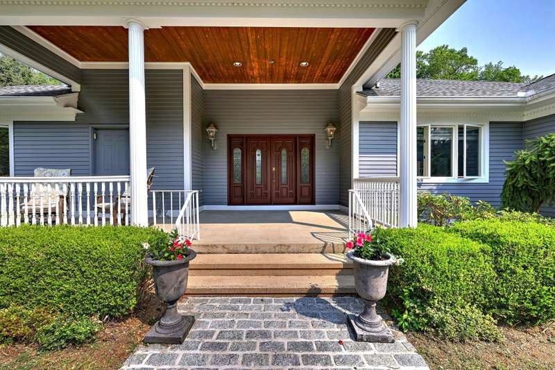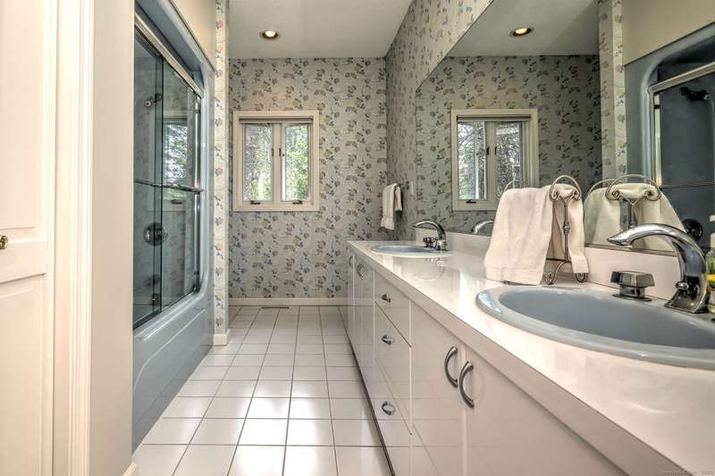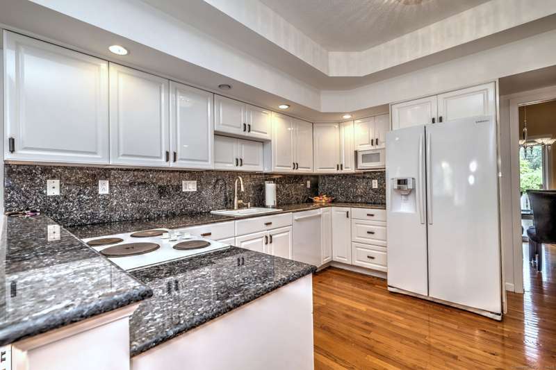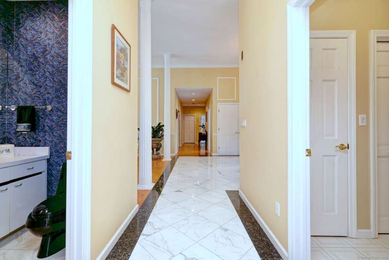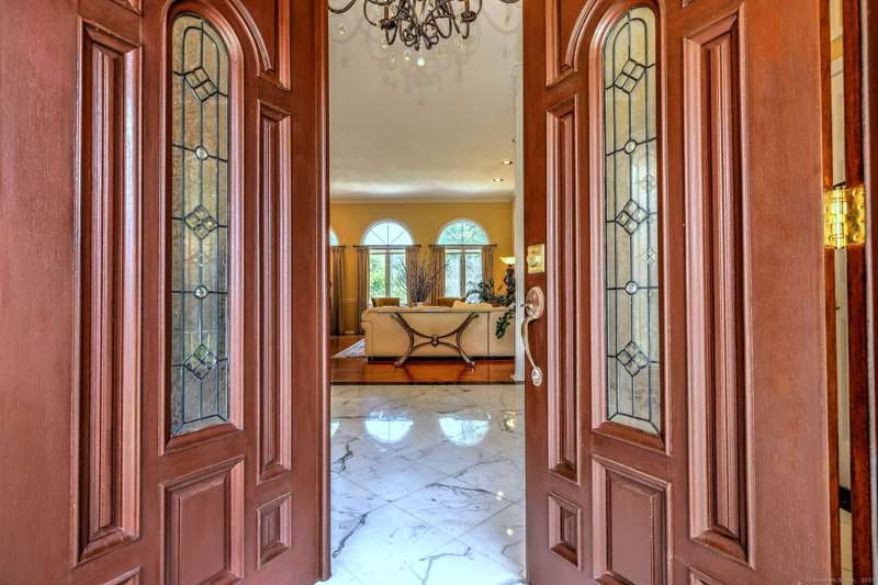 ARCHITECTURALLY UNIQUE RANCH WITH HIGH QUALITY CONSTRUCTION NESTLED ON QUIET CUL DE SAC THAT BORDERS ON THE BEAUTIFUL TRADITIONS PUBLIC GOLF CLUB AT OAK LANE. IDYLLIC COUNTRY SETTING ON 1.38 ACRES YET JUST 6 MINUTES TO RT 15, I95 AND YALE NEW HAVEN. EXPANSIVE DOUBLE DOOR ENTRY BECKONS YOU TO ENTER INSIDE THIS ARCHITECTURAL BEAUTY. MARBLE FOYER OPENS INTO A SUN FILLED LIVING/DINING ROOM WITH 15 FT CEILINGS,RICH HARDWOOD FLOORING,BUILT IN CABINETRY, WET BAR WHICH IS GREAT FOR ENTERTAINING AND RELAXING ALIKE. FRENCH DOORS LEAD TO EXPANSIVE TREX DECK WITH VIEWS OF YOUR LEVEL 1.38 ACRE. A TOTAL OF APPROX 2800 SQ FEET OF HEATED LIVING SPACE FEATURES NICELY APPOINTED WHITE EAT IN KITCHEN. LARGE MASTER SUITE WITH PRIVATE BATH AND ENORMOUS WALK IN CLOSET. RECENTLY UPDATED CIRCULAR DRIVEWAY AND 3 CAR GARAGE OFFER PLENTY OF PAKING FOR ALL. NEWER 30 YEAR ARCHITECTURAL ROOF ,HARDWIRED SECURITY SYSTEM,GAS FIREPLACE, 2800 ADDITIONAL SQUARE FEET ON THE LOWER LEVEL WITH 9FT CEILINGS AND WALK OUT OFFERS