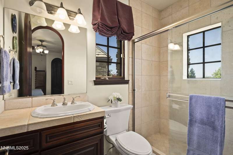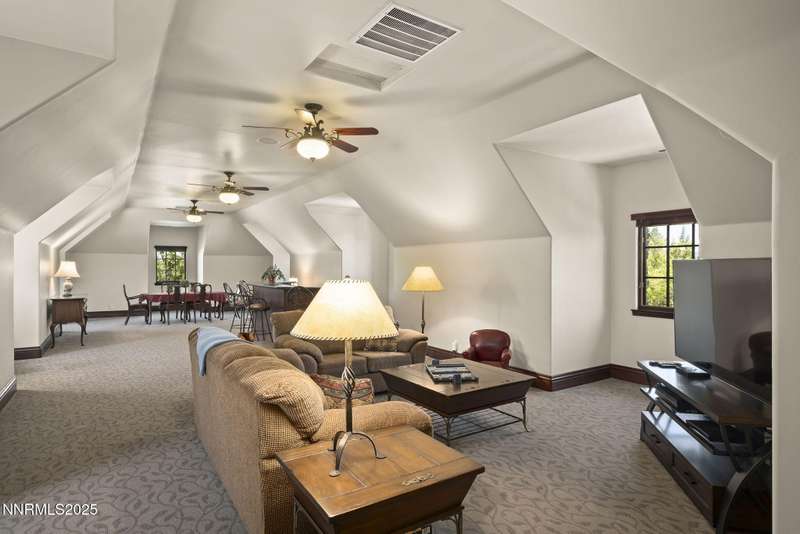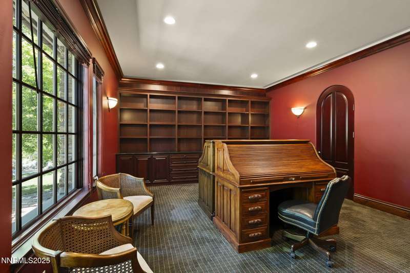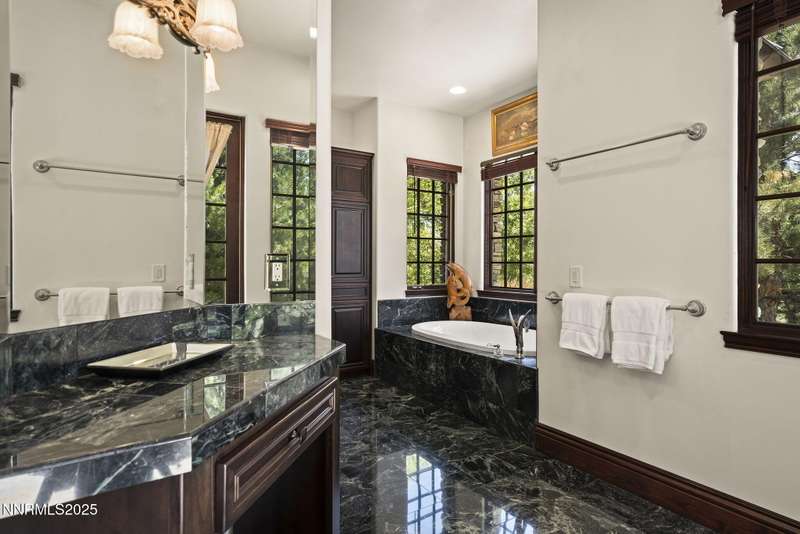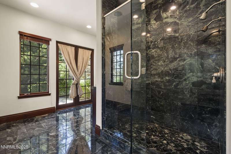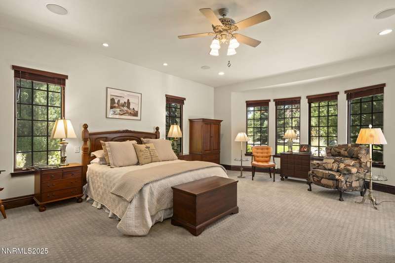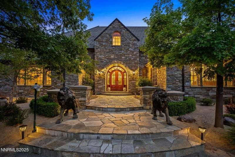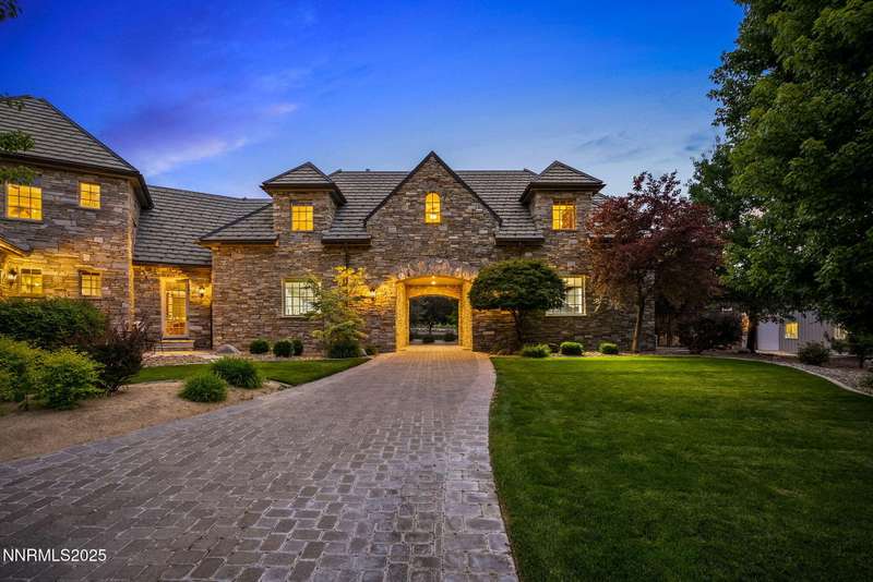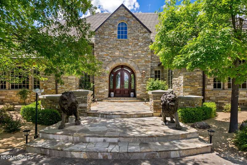 Rare and stunning property on 2.47 acres in coveted SW Suburban Reno Lakeside/Holcomb area. Down a long driveway and through the private gated entry, you will immediately be impressed by the mature landscaping and stunning exterior of this exquisite country manor with full hand-laid stone exterior. Wonderful curb appeal with beautiful entry, circular drive with water feature, and carriage breezeway between two 2-car garages. Additionally, there is a detached fully insulated and heated garage/car barn with soaring 18' ceilings, 3 doors including RV door. Steamboat ditch irrigation rights, domestic well plus AG water rights. The comfortable yet elegant floorplan features 4 ensuite bedrooms and 3 separate half baths. Large office with beautiful built-ins and the primary suite located on the main level feature a fireplace, luxurious bath, and huge walk in closet. The magnificent gourmet kitchen is open to the family room featuring 20 foot ceilings and extraordinary floor to ceiling stone fireplace and hearth. The grand formal dining room and separate living room with wall of windows overlook the grounds. Upstairs has 3 large bedrooms with private baths, a 1/2 bath, and beautiful landing open to the family room below and leading to expansive game room with walk-in wet bar, plenty of room for seating, dining, or extra office space! Other features include 8' solid Mahogany doors, water processing system, Control 4 lighting and Mesh Network Wi-Fi system. New insulated steel garage doors on attached garages, Generac whole house generator, extensive lighting and much more! Please see features list for more. Very close to all amenities .and airport yet very secluded country lifestyle Must see this extremely special home, location, and property!