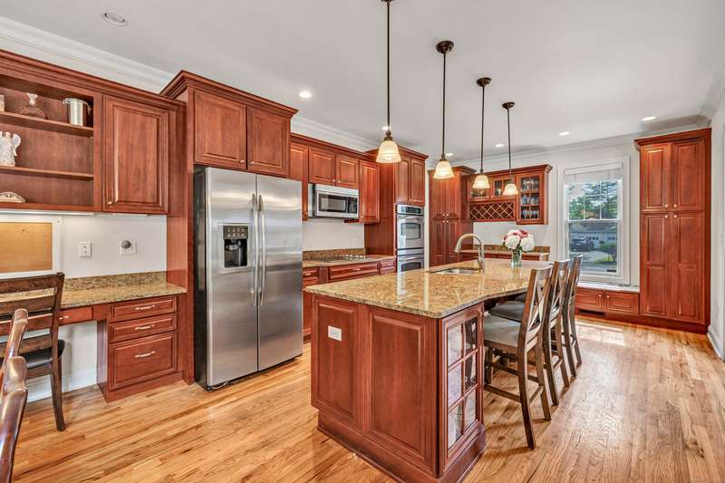 Few things are more inviting than a front porch, and 327 Lucille St delivers that and more in terms of curb appeal, which this home has in spades. This Colonial pairs classic architectural beauty with almost 5,000 sq ft across 4 levels, offering 4 bedrooms, an office, 4.5 baths, 2 car garage, and a fenced-in .46 acre yard. Inside, the foyer is flanked by the dining and living rooms, both with hardwood floors and custom millwork. The eat-in kitchen boasts granite counters, double ovens, SS appliances, an island, breakfast nook, and clear views into the sun-lit family room. A half bath and an en-suite guest room/office completes the first floor. Upstairs, the primary bedroom features a vaulted ceiling, walk-in closet, and a spacious, spa-inspired bathroom. A 2nd en-suite bedroom, 2 additional bedrooms with a jack-and-jill bathroom, and the laundry room completes the second floor. The finished 600 sq ft third floor bonus room offers endless possibilities, while the partially finished LL o