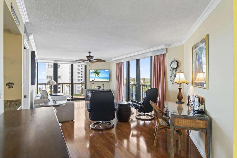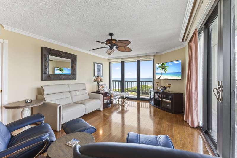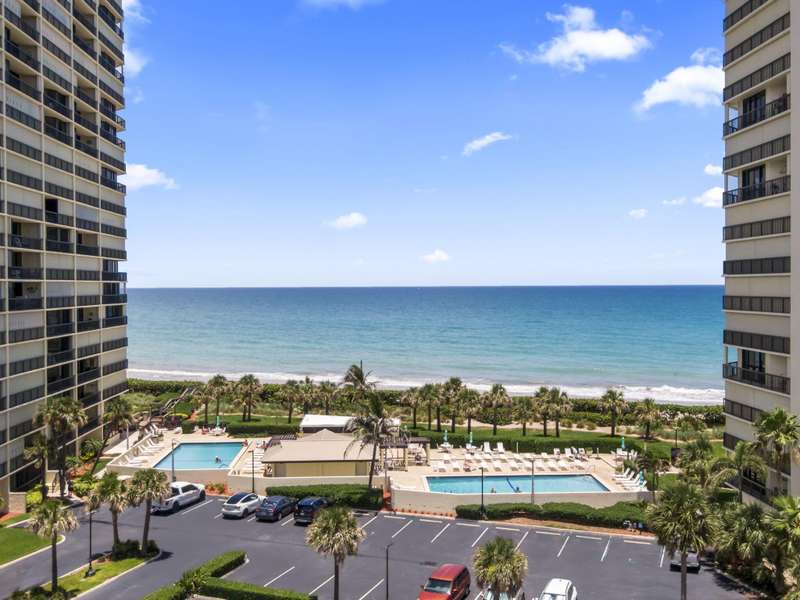 Oceanfront. Southeast corner unit is located on the 5th floor. The southeastern exposure gives you warmth in the winter and cool breezes during the summer. Totally renovated including new impact glass sliders & windows plus accordion shutters on the balcony for protection. Easy to lock & leave knowing everything is protected from storms as much as is possible. Gorgeous kitchen with all the upgrades & offering spectacular views of the ocean. Not only do you have sweeping views of the ocean from almost every room in the residence, including the sumptuous master suite, but there are also views of the intracoastal waterway & the Jensen Beach Causeway. Gated community.