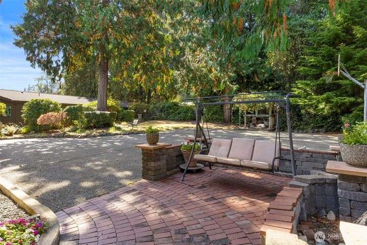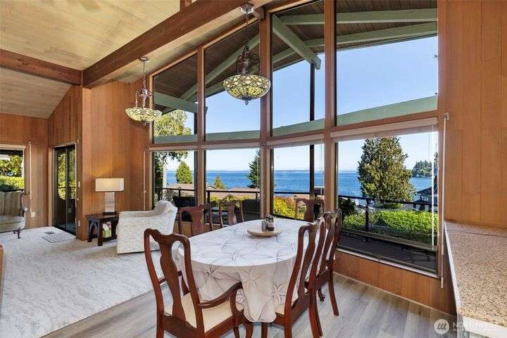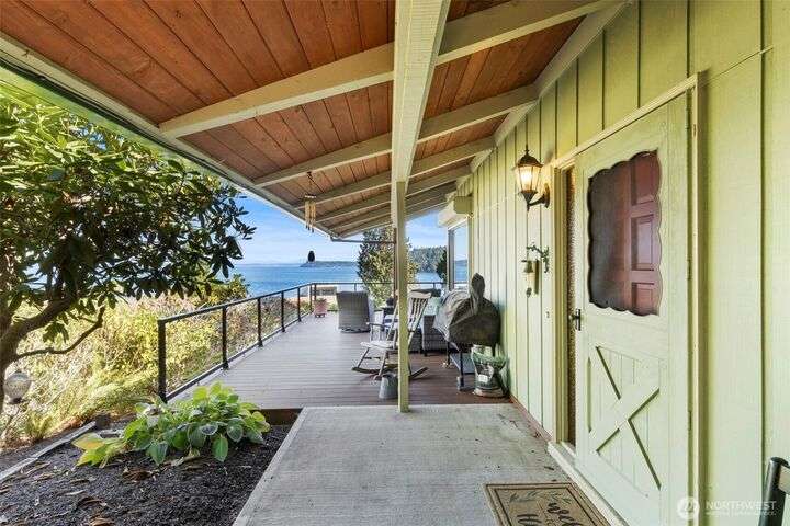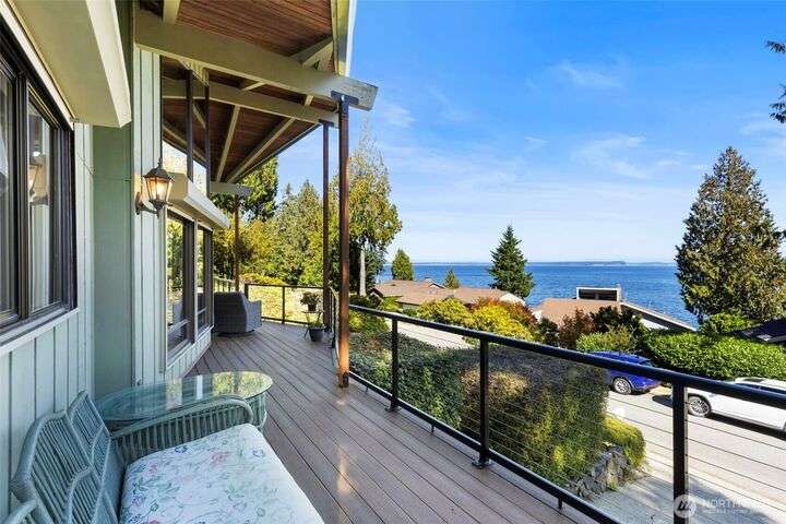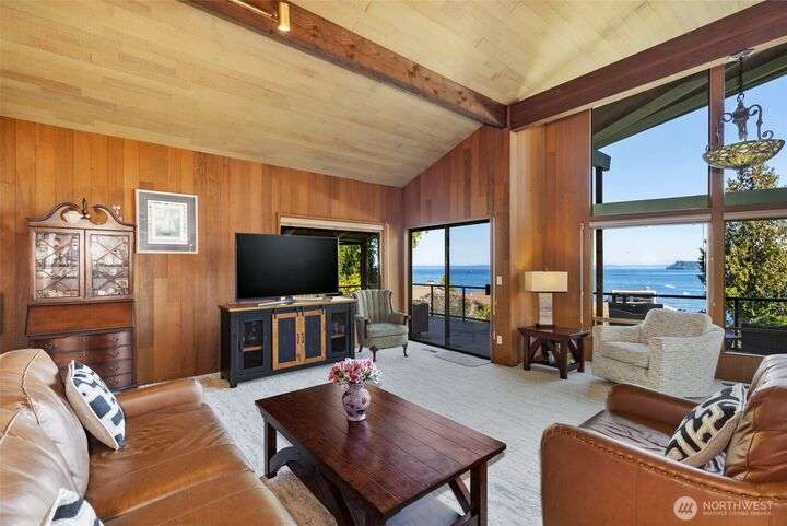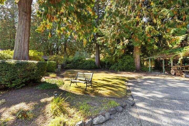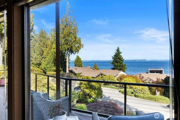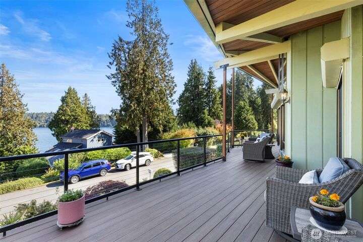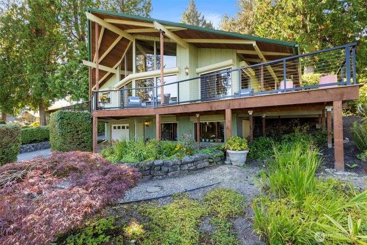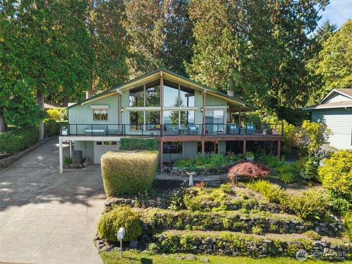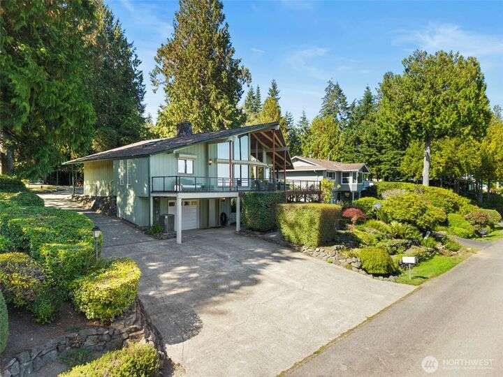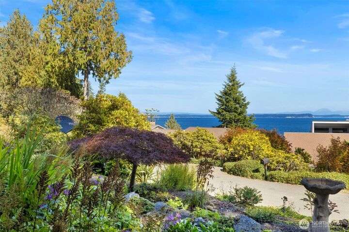 Morning noon or night, the magnificent views simply never get old! From the great-room inside to the covered porch, watch the sun rise over the Cascades and bathe the shipping lanes in morning and evening light. This 3 bed/2-3/4 bath home has been well loved and meticulously maintained for 30 years, with a new roof, paint, carpets composite deck and more. The single level living space is just a step from the parking area, and the spacious back yard.The fully finished lower level features a single car garage, large Rec room w/ bonus room. An exclusive location with exclusive amenities, including golf, swimming, marina and more, all situated in a lovely neighborhood with a meticulously maintained home and mature landscaping and Huge cedars!