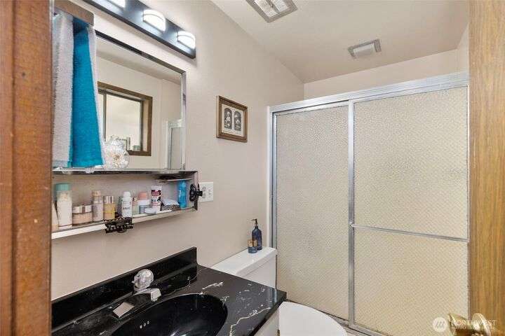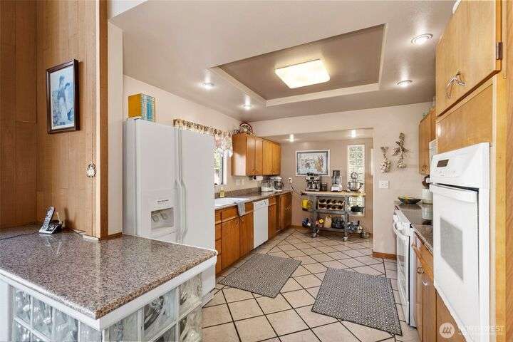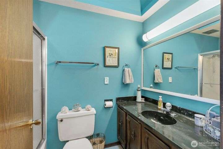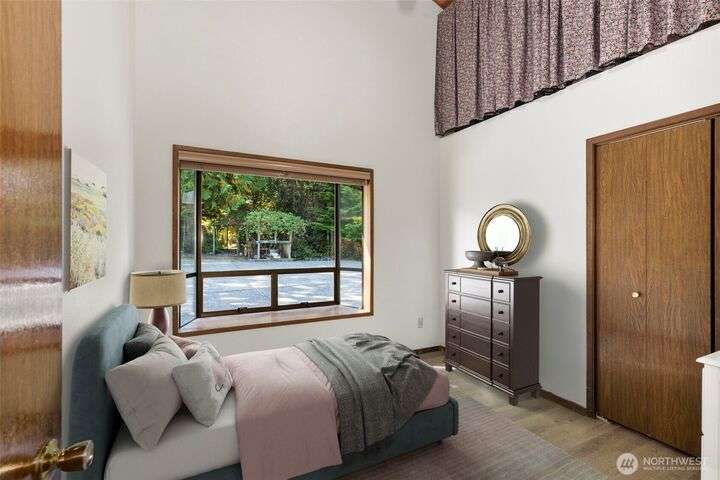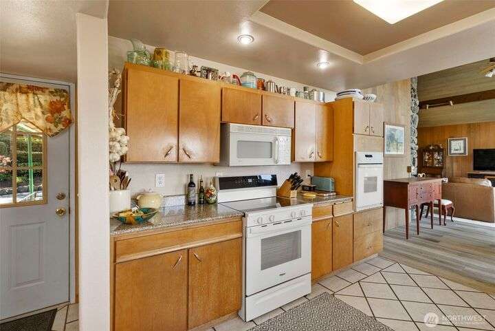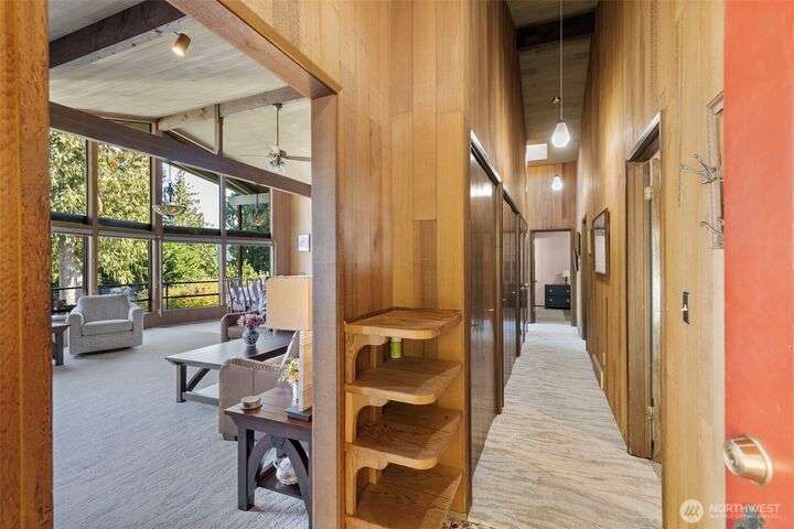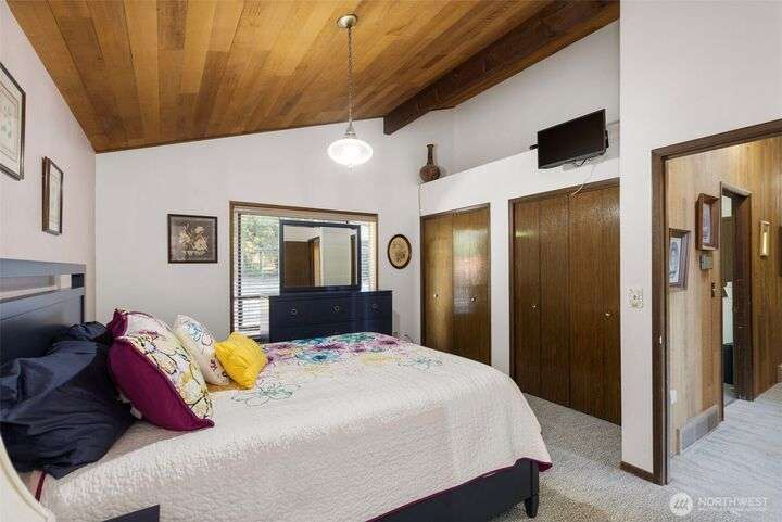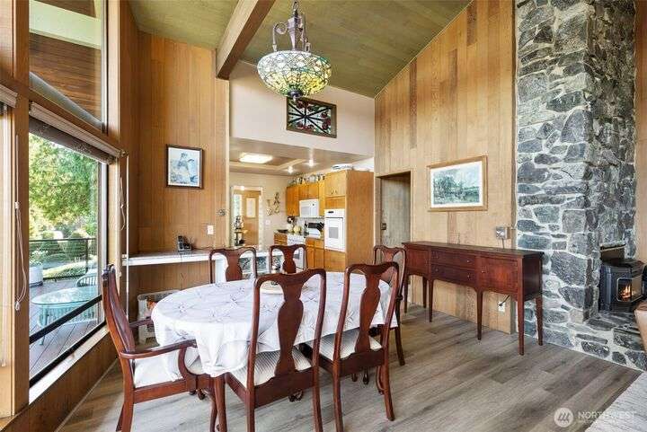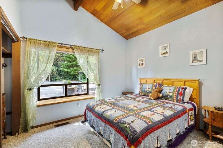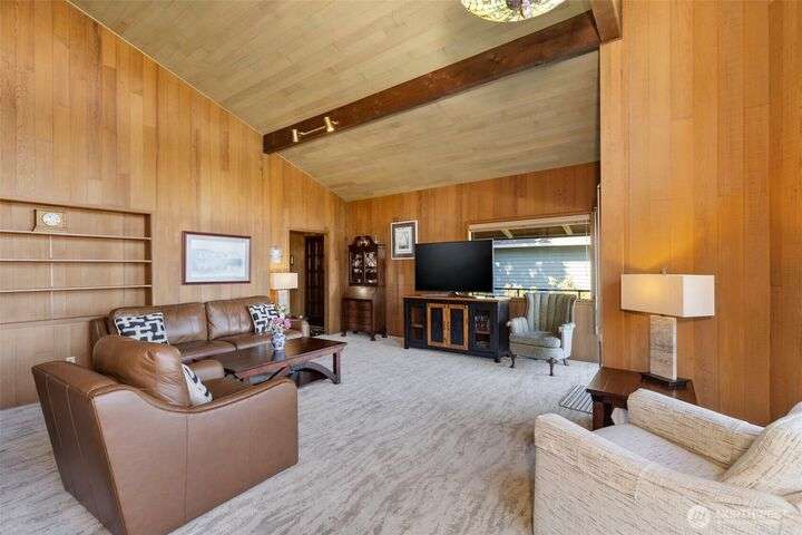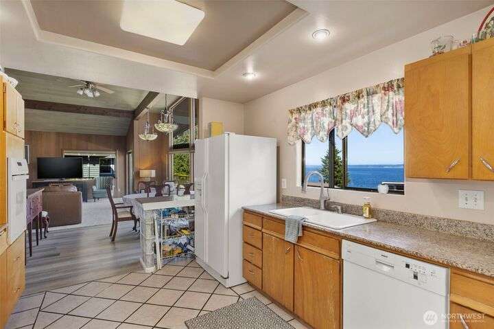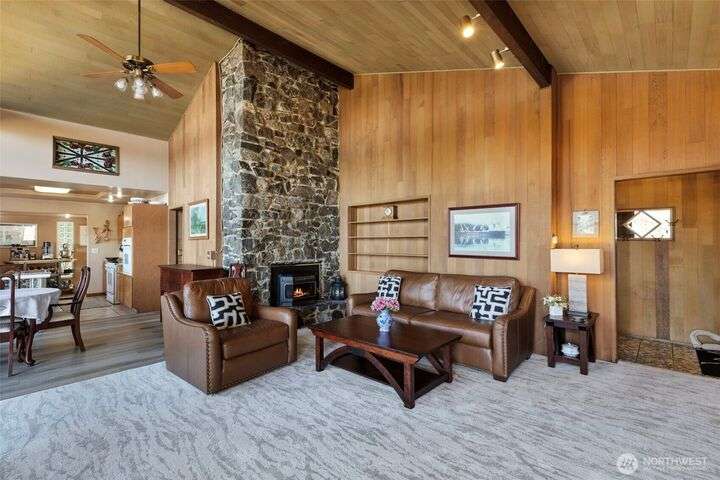 Morning noon or night, the magnificent views simply never get old! From the great-room inside to the covered porch, watch the sun rise over the Cascades and bathe the shipping lanes in morning and evening light. This 3 bed/2-3/4 bath home has been well loved and meticulously maintained for 30 years, with a new roof, paint, carpets composite deck and more. The single level living space is just a step from the parking area, and the spacious back yard.The fully finished lower level features a single car garage, large Rec room w/ bonus room. An exclusive location with exclusive amenities, including golf, swimming, marina and more, all situated in a lovely neighborhood with a meticulously maintained home and mature landscaping and Huge cedars!
