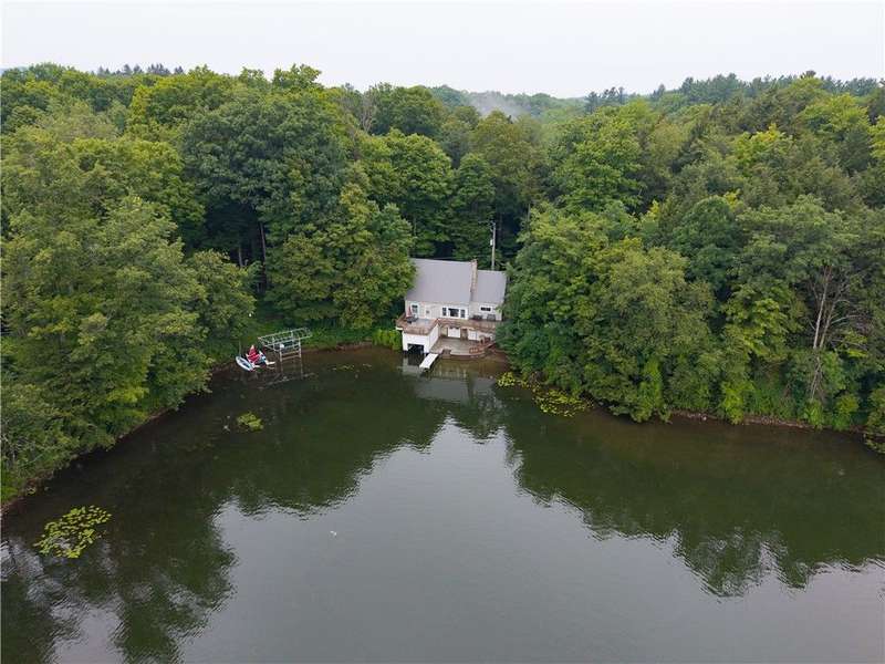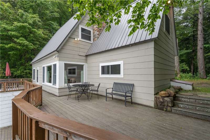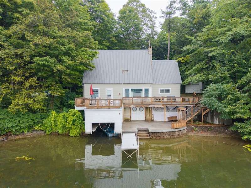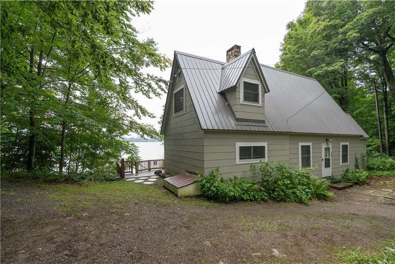 DON'T MISS THIS RARE OPPORTUNITY to own a charming 2-bedroom, 2-bath cottage?nestled on a PRIVATE?1+ ACRE LOT with an impressive 225 FEET OF LAKE FRONTAGE ON LOON LAKE! ?Step inside to find a spacious main-floor living room?featuring large windows with beautiful lake views. The main level also offers a kitchen, a full bathroom, and a generously sized bedroom. Upstairs, enjoy a versatile second living area?perfect for relaxing or accommodating extra guests ?plus a second bedroom with a closet and another full bathroom. The full basement?provides excellent storage for all your water toys, gear and outdoor essentials. Outside, make the most of lake life with two expansive decks overlooking the water, a?dock, and your very own boat house. This property has a metal roof that's only 5 years old & a brand new hot water tank. Whether you're entertaining or just unwinding, this is your perfect & private lakeside oasis.