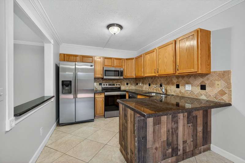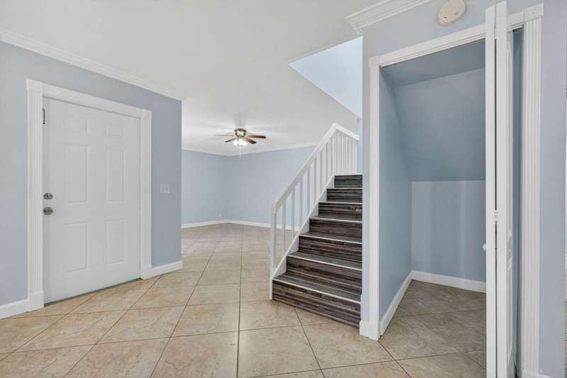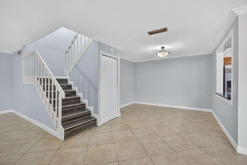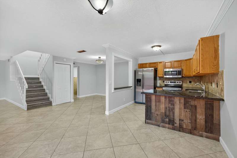GORGEOUS 3 bedroom, 2.5-bathroom RENOVATED townhome nestled in the vibrant heart of West Palm Beach with a NEW ROOF, New FRONT DOOR and Newer A/C (2023). Meticulously renovated with crown molding throughout the downstairs, captivating farmhouse theme, every corner exudes charm and sophistication. Step inside to discover beauty where every bathroom boasts exquisite tile work and each vanity cabinet has been tastefully replaced. The kitchen is a chefs dream, with nice countertops and equipped with newer stainless-steel appliances.
