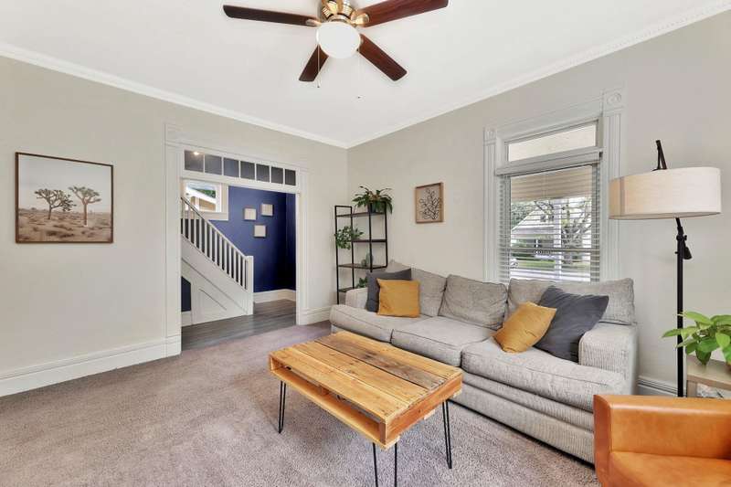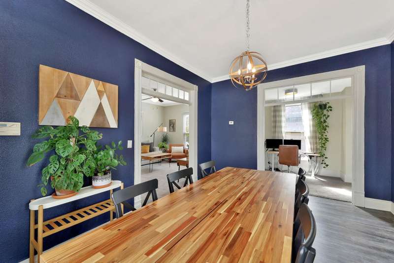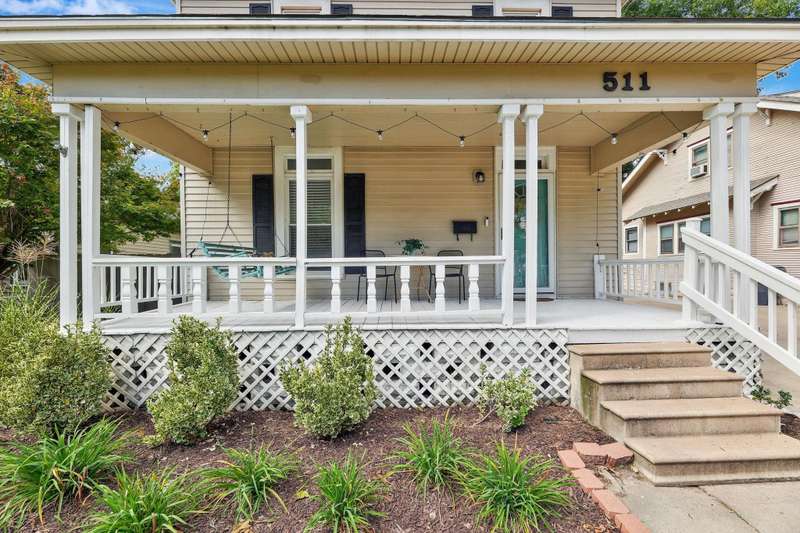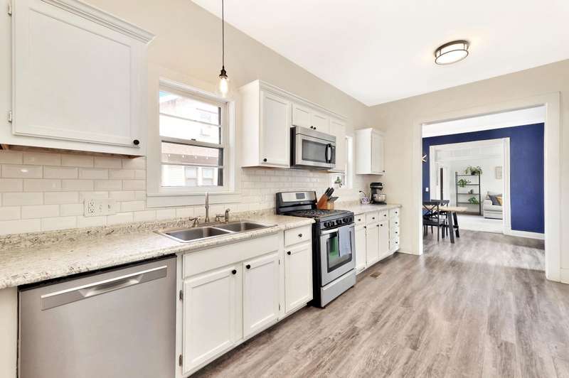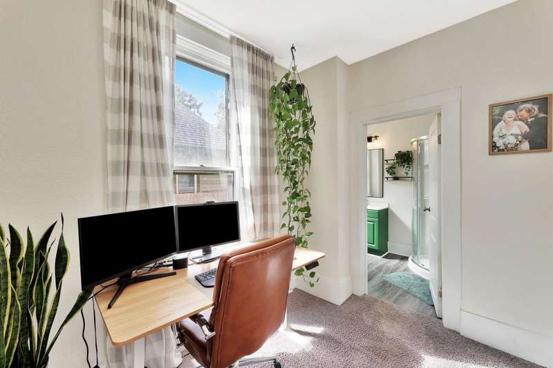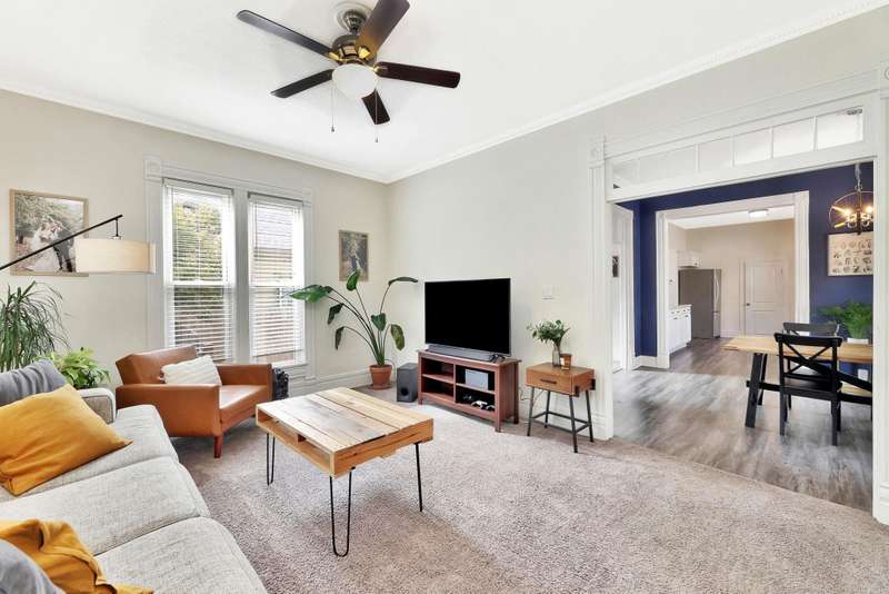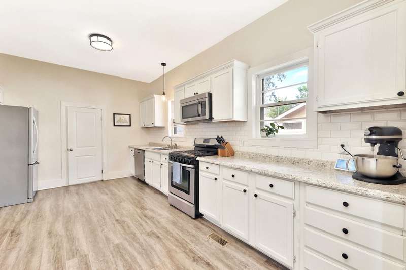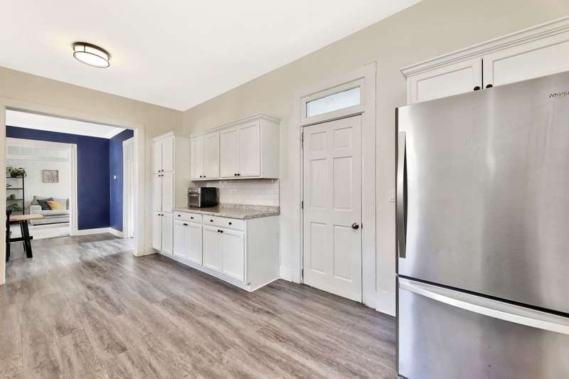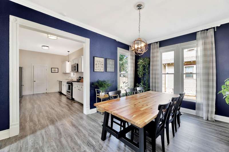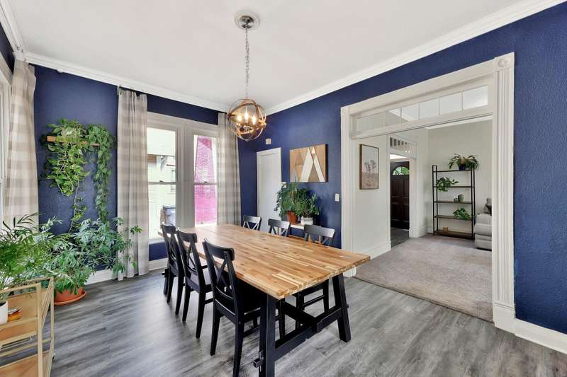 Step onto the wide, welcoming front porch and instantly feel the charm of this 1900-built beauty. Inside, soaring 10-foot ceilings set the tone for bright and spacious living. The inviting living room flows seamlessly into a fantastic dining roomperfect for hosting gatherings. At the heart of the home, youll find a huge kitchen with endless counter space, custom cabinetry, and all appliances includedready for your next meal or celebration. A cozy alcove on the main floor is currently used as an office, but it could easily become your reading nook, play area, or creative corner. A full bath and main floor laundry (washer and dryer stay!) add convenience. Upstairs, three generously sized bedrooms and another full bath provide plenty of room for everyone. Outside, a fenced backyard and lovely stone patio create the perfect setting for entertaining or relaxing evenings under the stars. The detached two-car garage adds even more practicality and will be fully repainted before you move in, and a brand-new roof for both house and garage is on its waypeace of mind included. This home blends historic character with modern comfort, and its waiting for you to make it your own.