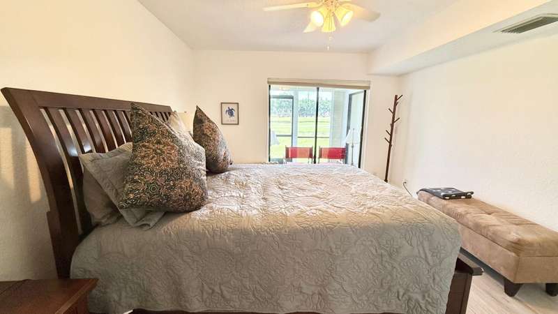 Bright and modern ground-floor 2 bedroom, 2 bathroom residence, fully equipped for a relaxing winter stay. The updated kitchen features sleek quartz counters and stainless steel appliances. Luxury vinyl plank flooring runs throughout the home, creating a clean and stylish look. Enjoy peaceful views of the garden and golf course from the screened patio enclosure. The spacious primary suite offers a large walk-in closet, while the split floor plan provides comfort and privacy for guests. Ideally located in a private setting just minutes from premier dining, shopping, and entertainment options.