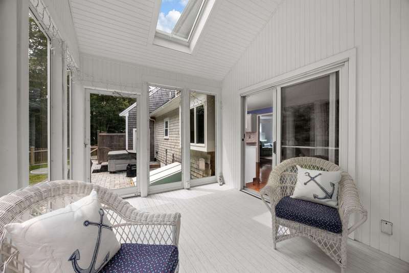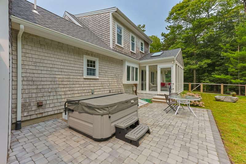 Nestled off of a quiet cul-de-sac, this classic 3-bedroom, 2.5-bath Cape-style home offers the perfect blend of privacy and charm. Perched on a serene hilltop, the property is surrounded by nature, providing a peaceful retreat just minutes from all the Cape has to offer.Inside, enjoy a spacious layout with a bright and airy living room, a cozy fireplace, and a thoughtfully designed kitchen that opens to the dining area ideal for entertaining. The first-floor primary suite includes a private bath, while two additional bedrooms upstairs share a full bath. A half bath is conveniently located on the main level.Additional features include hardwood floors, a full basement, and a large 3 season room overlooking the tranquil backyard--perfect for summer gatherings or quiet mornings with coffee. Offering an outdoor shower and jacuzzi, along with a nice patio.Whether you are looking for a year-round residence, vacation getaway, or investment property, this hilltop Cape Cod gem is ready to welcom