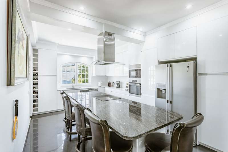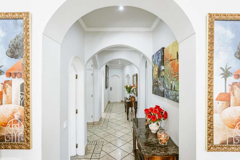 Renovated traditional-style villa with five bedrooms and a swimming pool, located in a residential neighborhood with privacy and security in Guia, appreciated for its proximity to Albufeira in the Algarve. The property stands out for its spaciousness, functional distribution and adaptability, offering three floors, including a large basement, designed to ensure comfort, versatility and excellent sun exposure. This charming villa has five large bedrooms with fitted closets and six bathrooms, as well as two fully-equipped kitchens and two large living rooms that allow different living areas to be integrated. The basement offers a large, multifunctional space, ideal for creating different areas, such as a cinema room, gym, office or games room. The interior combines traditional elements with a modern touch, especially in the kitchens and bathrooms, which have been completely updated to contemporary standards. Outside, the swimming pool offers the perfect setting for enjoying the Algarve's mild climate, complemented by an easy-care garden, leisure areas and a closed garage for two cars and additional capacity for five more outside. This is a unique opportunity for those looking for a substantial residence, with great potential for personalization and set in one of the Algarve's most valued areas. CHARACTERISTICS: Plot Area: 870 m2 | 9 365 sq ft Area: 463 m2 | 4 988 sq ft Useful area: 277 m2 | 2 979 sq ft Deployment Area: 403 m2 | 4 342 sq ft Bedrooms: 5 Bathrooms: 6 Garage: 2 Energy efficiency: C FEATURES: 5 bedrooms 2 equipped kitchens Garden Swimming pool Garage