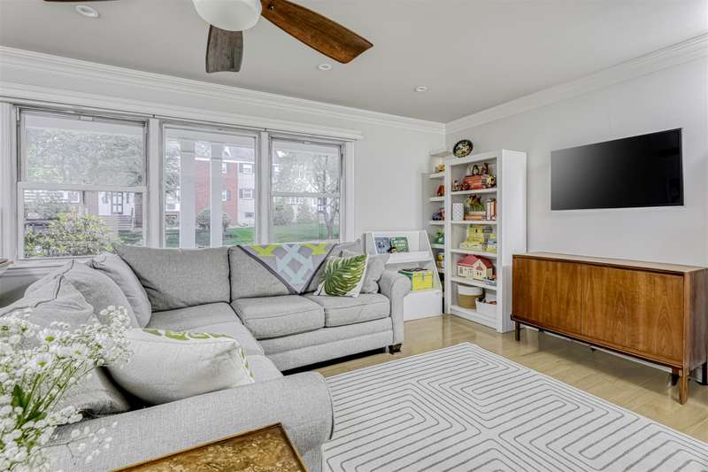 Stunning first floor unit shows to perfection! Young kitchen well designed with granite counters, stainless steel appliances, recessed refrigerator. Dining room with sliders to balcony. All new hardwood floors installed. Spacious living room with crown moldings and recessed lighting. Full bathroom redone. Master bedroom with recessed lighting and crown moldings. Common washer and dryer in building along with storage bin. Reserved parking spot #20. Bon Aire is a beautiful and well maintained community in the foothills of Ramapo with easy accesss to highways, shopping and public transportation.