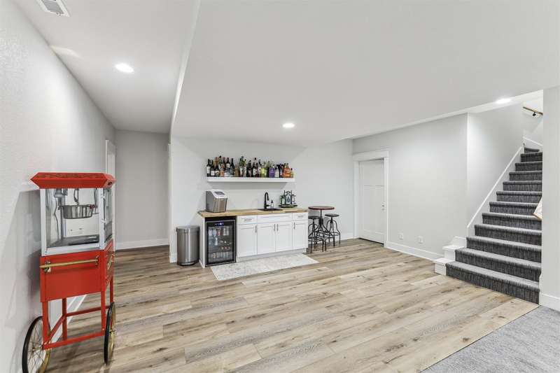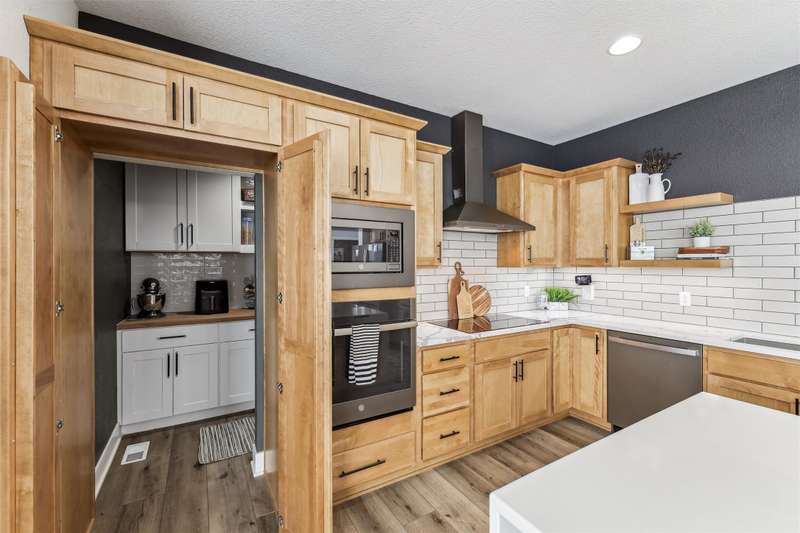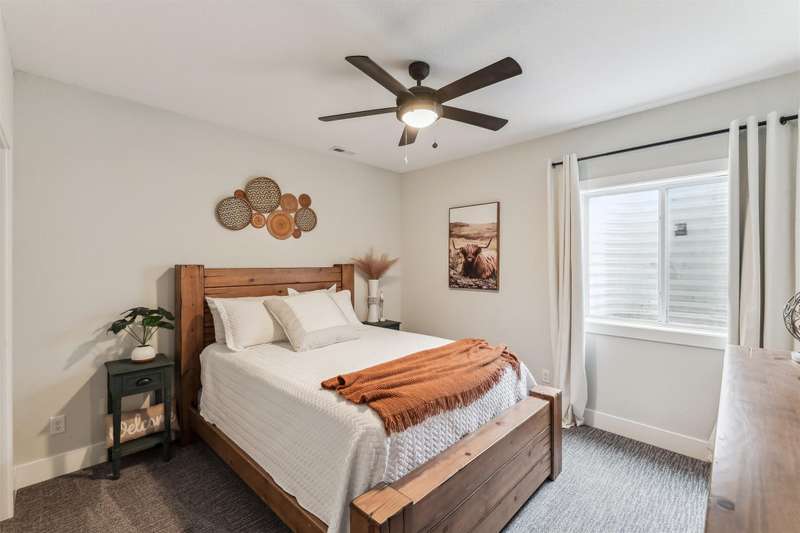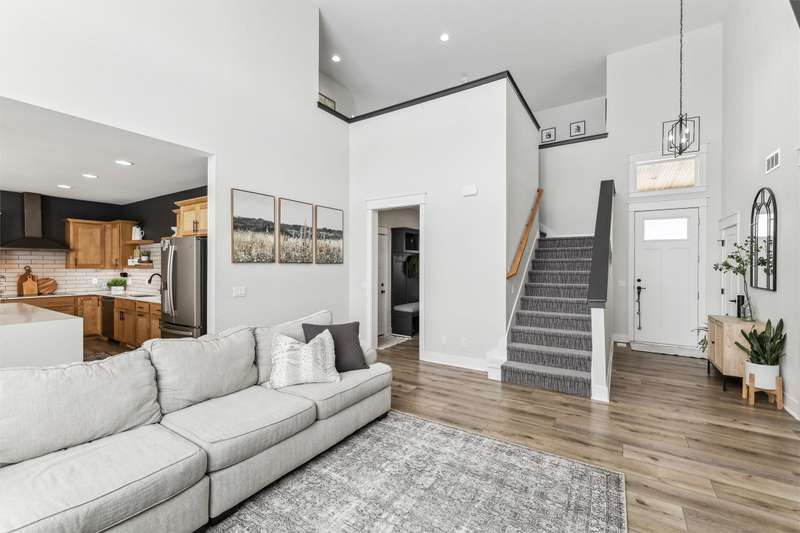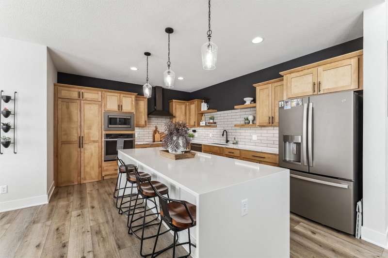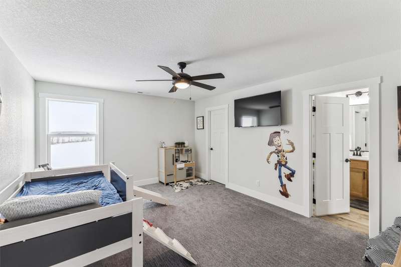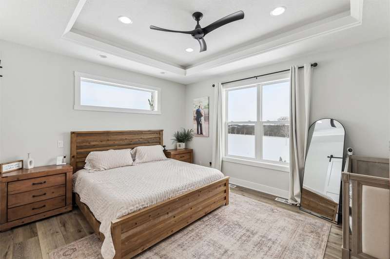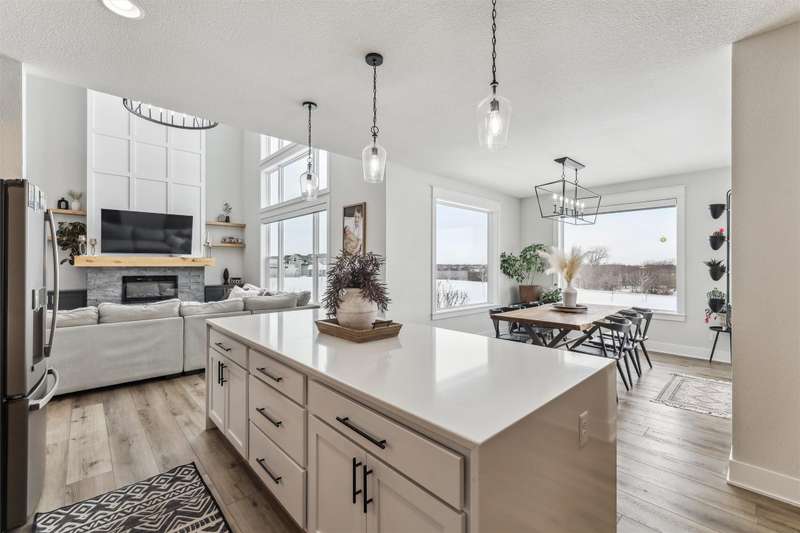 Nestled on 5 acres, this stunning 1.5-story home spans nearly 3,800 sq. ft. of meticulously crafted living space. The grand 2-story great room features floor-to-ceiling windows, flooding the space with natural light and showcasing breathtaking countryside views. A cozy fireplace adds warmth, while the gourmet kitchen flows into a charming dining area. The main level includes a luxurious master suite, mudroom, and first-floor laundry. Upstairs offers a cozy sitting area, two spacious bedrooms, and a beautifully designed bathroom. The finished lower level is an entertainer's dream with a wet bar, recreation area, bedroom, full bath, and office. The 3-car heated detached garage, 1-car detached garage, and 3-car attached garage provide ample space for vehicles and storage. This home boasts flawless finishes and exceptional attention to detail, reflecting pride of ownership. Located in a tranquil setting with easy access to nearby amenities, this property offers a perfect blend of seclusion and convenience.