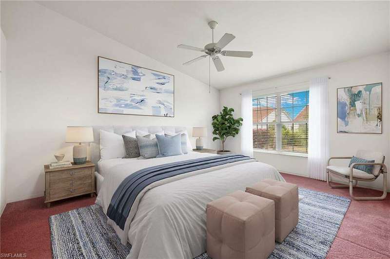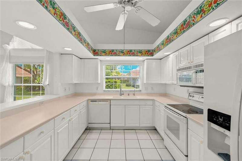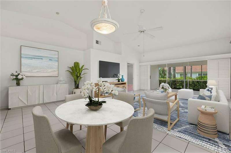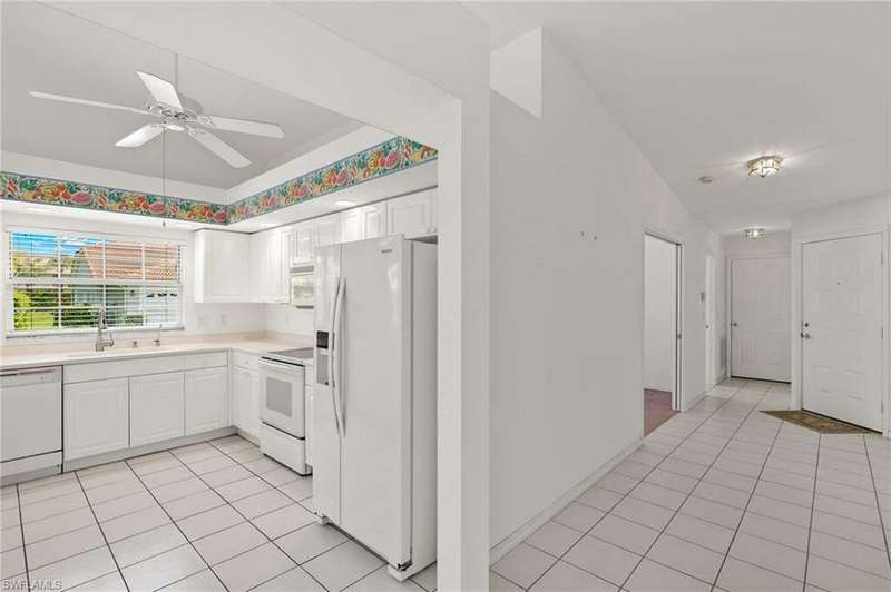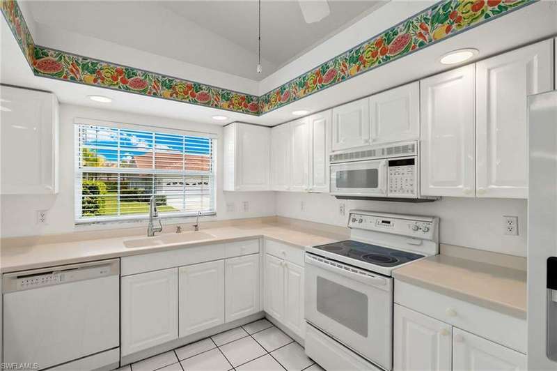 We are pending but taking backup offers. This desirable corner end villa features 3 Bedrooms and 2 Bathrooms and an attached oversized 2-car garage. Inviting entry foyer leads to the spacious open-concept living area with vaulted ceilings and access to enclosed lanai with tranquil views. Master suite features a large bedroom, walk-in closet and en-suite bathroom. 2 additional guest bedrooms with shared hall bathroom. The roof is 2 years old! Melrose Gardens is a Villa neighborhood located in the desirable Berkshire Lakes complex on 15 acres consisting of 74 Villa Homes. Amenities include a private pool and clubhouse. Melrose Gardens residents maintain membership in the Berkshire Lakes Master Association and as such the Master Association's amenities, pool, clubhouse and tennis courts are available for their use. Walk to Restaurants, shopping and Starbucks! Berkshire Lakes offers easy access to downtown Naples renowned for its fine restaurants, cafes, shopping and beaches. Well maintained by the current owner for almost 25 years this corner unit awaits your personal touches to create a lovely Naples retreat. Some photos are virtually staged.