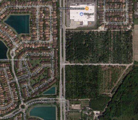 ATTENTION BUILDERS AND DEVELOPERS: 9.20 ACRES M/L IN IDEAL LOCATION, FRONTING ON SPEEDWAY BOULEVARD (S.W. 137 AVENUE), CLOSE TO RACETRACK, NEW WALMART,HOMESTEAD AIR RESERVE BASE, HOMESTEAD SPORTS COMPLEX AND ACROSS THE STREET FROM THE HIGHLY SUCCESSFUL WATERSTONE RESIDENTIAL DEVELOPMENT, CURRENTLY ZONED AGRICULTURAL AND UTILIZED AS A TREE FARM. MIAMI-DADE COUNTY MASTER PLANNED AS LOW DENSITY RESIDENTIAL-2.5 TO 6 UNITS PER ACRE-POTENTIAL TO REZONE COMMERCIAL. THIS PROPERTY IS ADJACENT TO THE HOMESTEAD AIR RESERVE BASE. RESIDENTIAL DEVELOPMENT IS SUBJECT TO REMOVAL OF A DEPARTMENT OF DEFENSE SAFETY/HAZARDOUS EASEMENT WHICH IS ATTACHED TO PROPERTY. PLEASE CALL LISTING AGENT FOR FURTHER DETAILS.