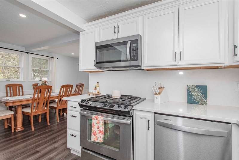 Lovingly maintained and thoughtfully updated, this charming Stoughton Colonial blends comfort, efficiency, and style. Since 2020, the owners have invested in major improvements—a new septic system (2021), New Front Section Vinyl Fencing, Gas heating and Central Air (2024), hot water tank (2021), and a new front porch and Trex deck perfect for summer evenings. New Sliding Door, The bright, modern kitchen features white shaker cabinets with soft-close drawers, quartz counters and backsplash, and stainless-steel appliances. New luxury vinyl plank flooring runs throughout the first floor, while the second level offers 2 comfortable bedrooms, a full bath, and a flexible layout easily converted back to 3 bedrooms. With a fenced backyard, storage shed, and energy-saving upgrades by Mass Save, this move-in ready home offers peace of mind and easy living—just minutes to the commuter rail, shopping, and restaurants. A wonderful opportunity at $469,900, Hurry at this price this will NOT last long
