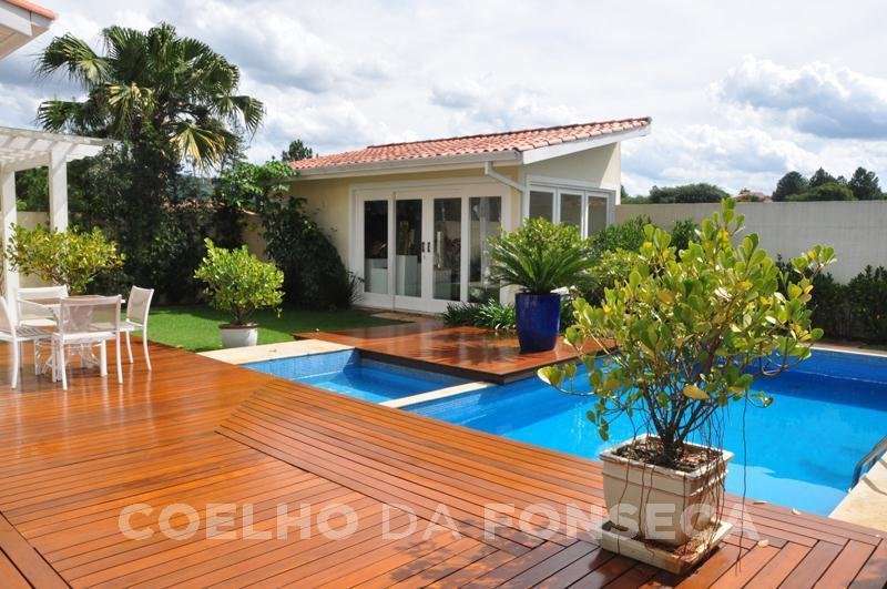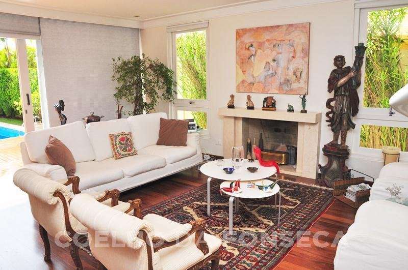 Linda residência com decoração clean, living com lareira, banheiros em mármore Carrara com hidro, ambientes bem integrados, área externa com piscina, jardim e deck.