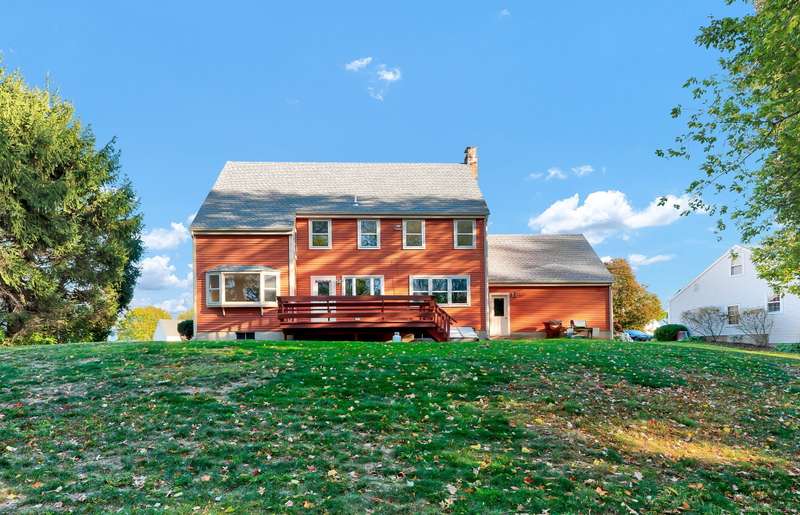Location, Neighborhood & Lifestyle! Nestled in a desirable, sidewalk-lined neighborhood within the highly sought-after Webb Elementary School district, this lovingly maintained Colonial-style home offers over 2,400 square feet of classic charm, comfort, and space. A brand-new GAF Timberline HDZ roof-backed by a Silver Pledge Warranty-adds long-term value and peace of mind. A charming brick walkway and wide front steps lead to a welcoming foyer with two closets, setting the stage for the spacious and inviting interior. The kitchen has granite countertops, an island, maple cabinetry that extends to the ceiling, and a window overlooking the backyard. From here, step directly onto the back deck-perfect for outdoor dining or simply enjoying the peaceful setting. Adjacent living and dining rooms with refinished hardwood floors offer an easy flow for both daily living and special gatherings. The dining room is enhanced by a bright bay window, while the cozy family room just off the kitchen fe