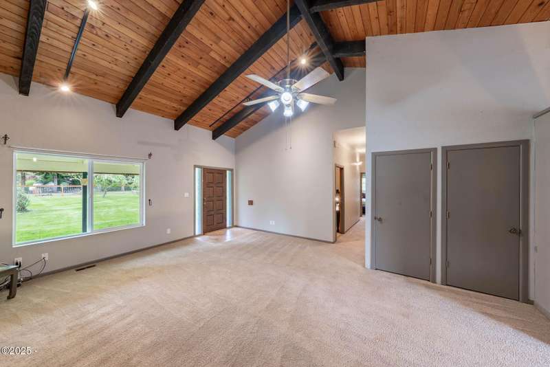 Scenic River Front 1.5 Acre with Spacious Single Level home. 4 bedroom, 2 bath, living room, separate dinning room and cathedral wooden beamed ceilings. Kitchen functionality at its best. Beautiful views of the river from the sprawling deck. Workshop with water, electricity and plenty of storage for the hobby enthusiasts. X-Large RV/Boat garage with electric, lighting and plenty of space for other large projects. Fenced yard, with apple trees, plum tree, mature blueberry bushes, raised garden beds and a green house with electricity and hot/cold running water perfect for the Gardner who enjoys a dedicated space. Property is not in a flood zone. River access for your own fishing hole. 15 minutes to the Pacific Coast. Tranquil living at its best!