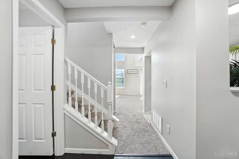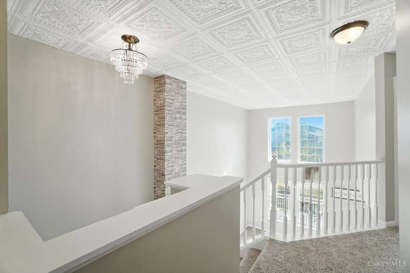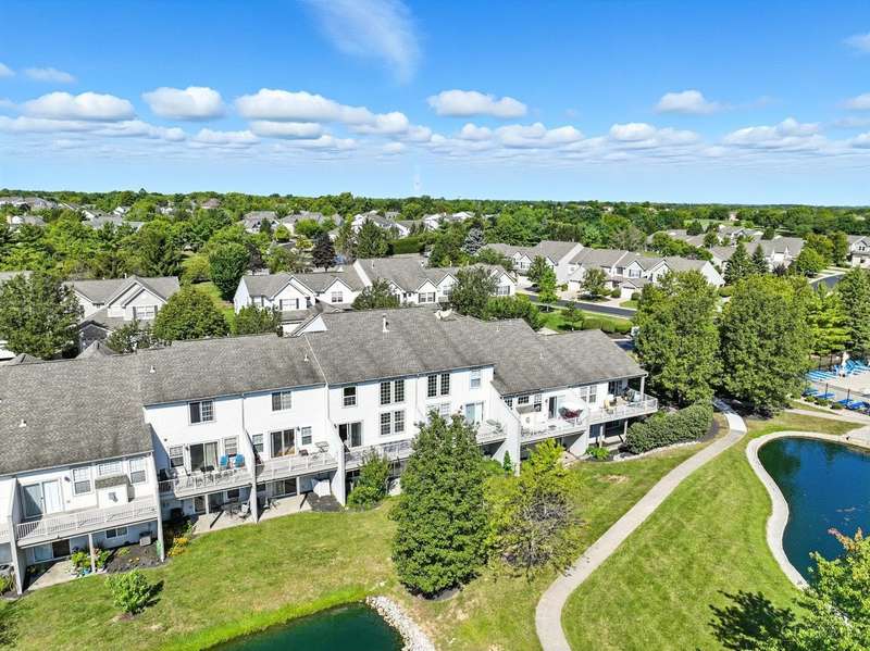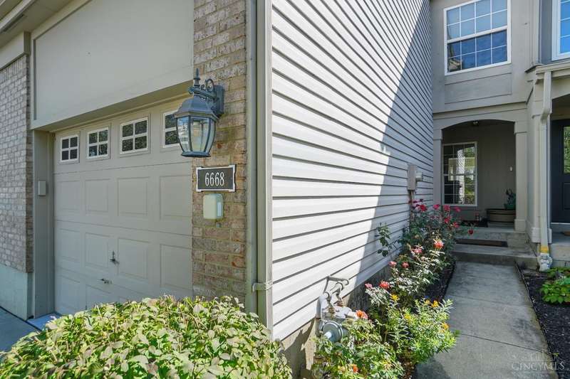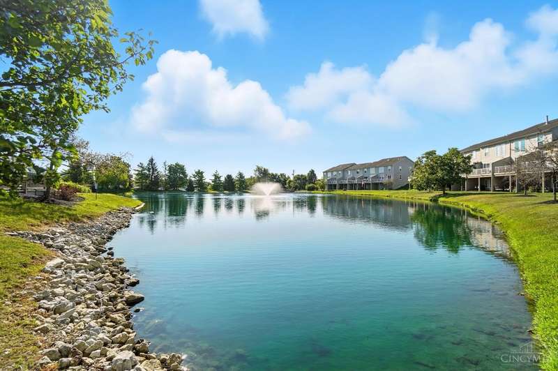 Stunning 3-story home in Mason's Village Lakes with serene pond views, Kings Island fireworks, and glowing sunrise exposure. Grand entrance with koi pond and rose garden. Enjoy a fully updated master bath with Jacuzzi, frameless sliding door, and new tile. Modern kitchen with granite countertops and white marble-look vinyl flooring. Smart home features include thermostat, doorbell, and garage opener. Cozy gas fireplace, elegant chandelier, and fresh neutral paint throughout. Walkout basement with bar, gym area, storage, and fruiting apple trees. Spacious garage fits van and motorcycles. Close to Mason schools, parks, and Kings Island. A/C 2022 and Furnace 2023.