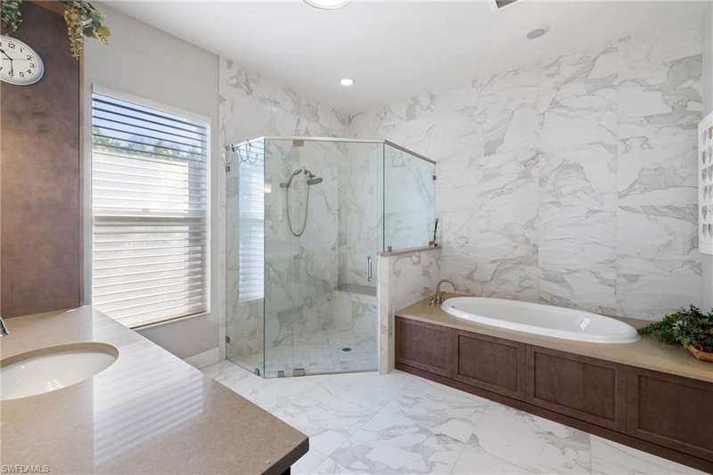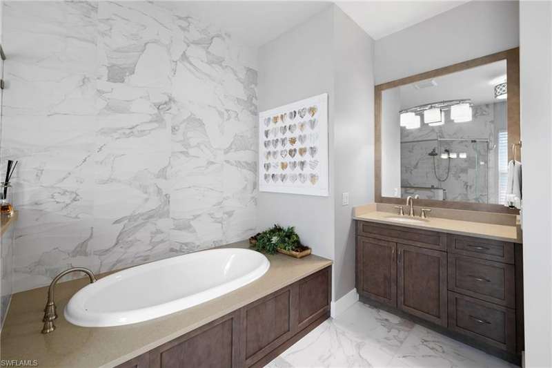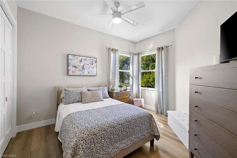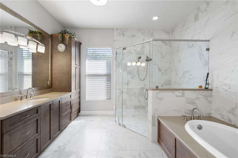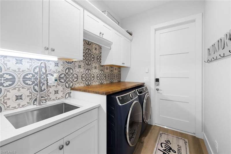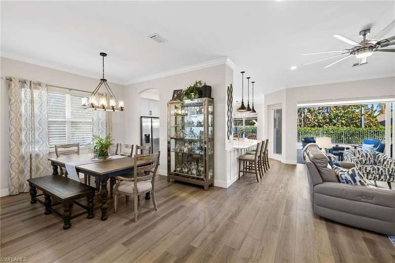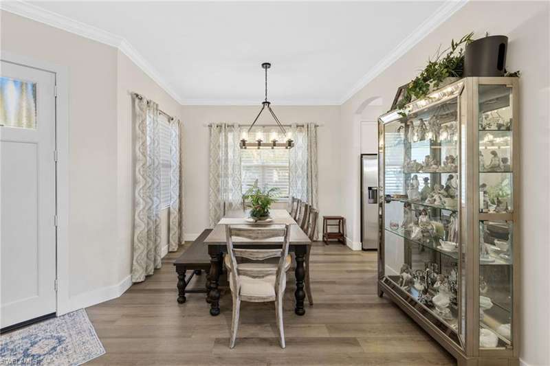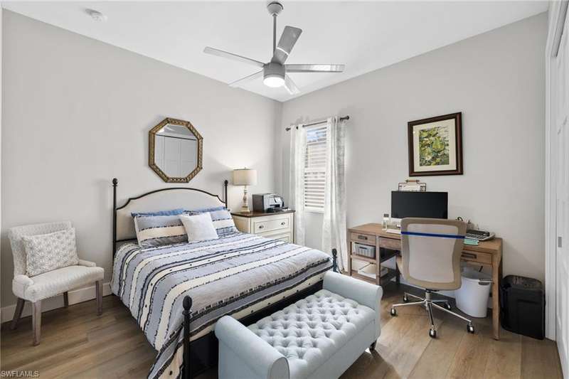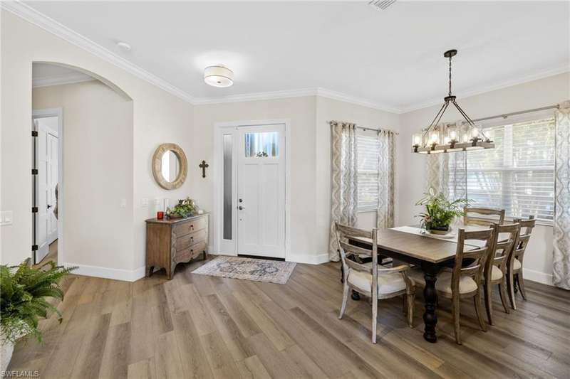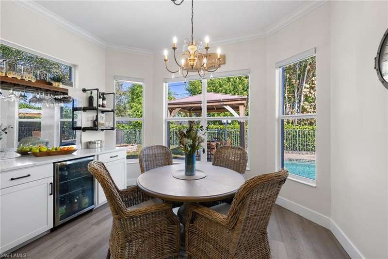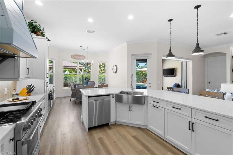 MOVE-IN READY dream home a stunning custom-designed oasis, perfectly located west of 41 in a tranquil neighborhood just a short distance from Bonita Beach. This property offers the perfect blend of coastal luxury and functionality, all without the constraints of an HOA or rental restrictions Upon entering, you are greeted by a sense of sophistication with carefully curated 8 ft 4-panel solid wood shaker doors, matching trim and baseboards, LVTP flooring, and impact glass windows that bathe the interior with natural light. The heart of this home is the stunning chef's kitchen, adorned with quartz countertops, custom cabinetry, and a 36-inch gas stove with a custom hood with a 100-gallon gas tank. The living space features a custom brick accent wall with an electric fireplace and seamlessly extends outdoors to a covered lanai with a retractable screen that leads to a fully fenced-in backyard with an ozone-treated heated pool, gazebo, and side yard. Other features include an 11x23 ft grou