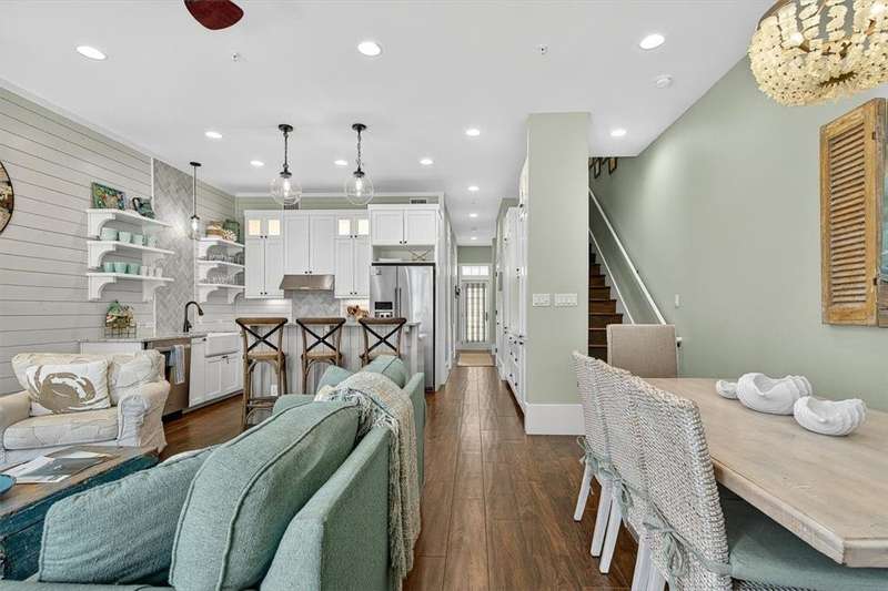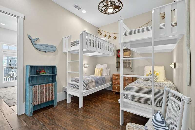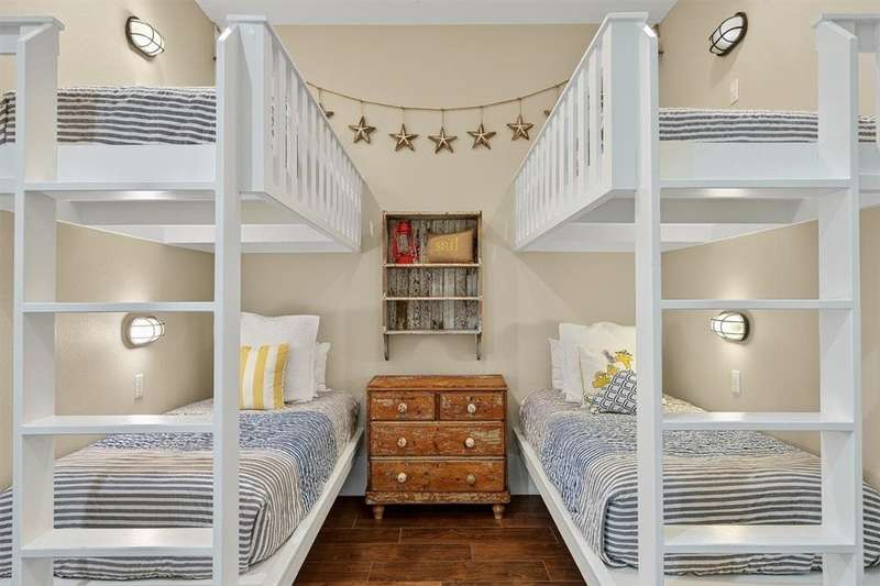 A Gathering Place offering enjoyment. Cinnamon Shores refers to "community" beach time, fun time for all. This exquisite 2 story unit with ground floor entry is just across the street from the Central Social Circle grounds, pool, restaurants, etc. will comfortably sleep 10-11 people. Sale includes beautiful furnishing and ready for immediate use and occupancy. On the ground floor walk into a delightful open concept living/dining/ kitchen area with just the right amount of shiplap and island magic to prove attention has been paid to each detail. There is one first floor suite, plus a fun day bed and 2 upstairs private bedrooms with 2 baths, plus a fun bunk room for four that offers access to a balcony. All designed to provide each one a space their own. Cinnamon Shores North is a most warm and welcoming resort community to appeal to the those seeking the active beach enjoyment, cook-outs, walk in restaurants or maybe a hideaway with a good book. We think you'll find Cinnamon Shores to be Padre Island's brightest 4-star, maybe even 5 star place to be. If investment is your desire, you'll be happy to learn from the Office all about that and the details involved with the Rental Program. Monthly fee also includes internet/cable w/Infinity. Great Rental program can make this a satisfying getaway for you and for others.