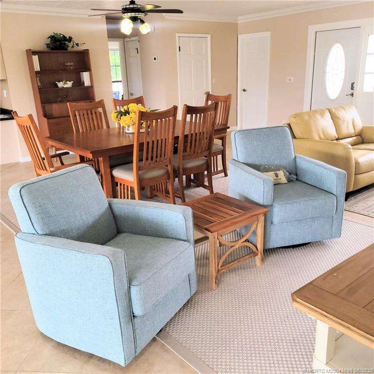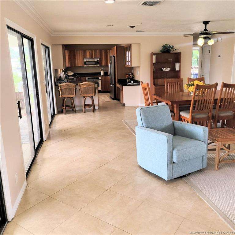 120 FEET OF WATERFR?N? O? T?? ?T LUCIE RIVER WE?T ?F THE INDIAN ST BRIDGE. 40 FT DOCK INCLUDED (6 FT DEPTH) , FURNISHED 3 BR, 2 BATH HOME CONSISTING OF ONE KING, ONE QUEEN, ONE FULL AND A DOUBLE TWIN TRUNDLE BED. NEW KITCHEN AND BATHS, OPEN AND SPACIOUS HOME WITH A FABULOUS WATERFRONT PORCH EXTENDING THE LENGTH OF THE HOME. THIS HOME CAN BE RENTED MONTHLY FOR 2025 SEASON, FURNISHED. SO MANY OPTIONS TO CONSIDER! FEATURES: CROWN MOLDING, TILE ON DIAGONAL, LV FLOORING, GRANITE, SS APPLIANCES, CHERRY WOOD CABINETS, FLOOR TO CEILING TILED BATHS, METAL ROOF, SHUTTERS, AND CONVENIENTLY LOCATED TO I95, SHOPPING AND DINING. LAWN CARE, TRASH AND RECYLCING INCLUDED.