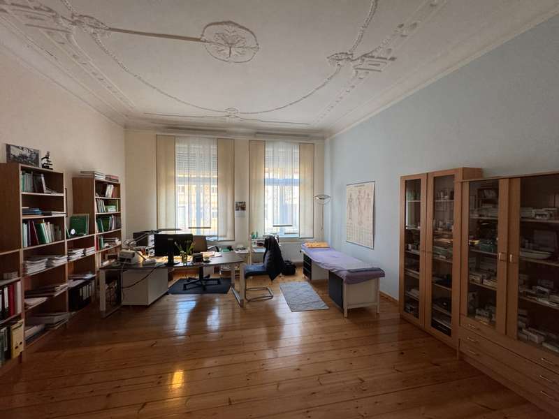 The attractive and listed villa was built in 1895 and completely renovated between 2000 and 2001 and has been continuously maintained since then. On the mezzanine floor, a prestigious office/practice floor of approx. 137 m² is now available for rent, which was previously used as a doctor's practice and can also be used as an office. Partial letting of some rooms is also conceivable. The unit is heated by a gas central heating system with hot water preparation. The attractive, listed villa was built in 1895 and completely renovated between 2000 and 2001. It has been continuously maintained ever since. The mezzanine floor now offers approximately 137 m² of prestigious office/practice space for rent, which was previously used as a doctor's office and could also be used as an office. It would also be possible to rent some of the rooms separately. The unit is heated by gas central heating with hot water supply.
