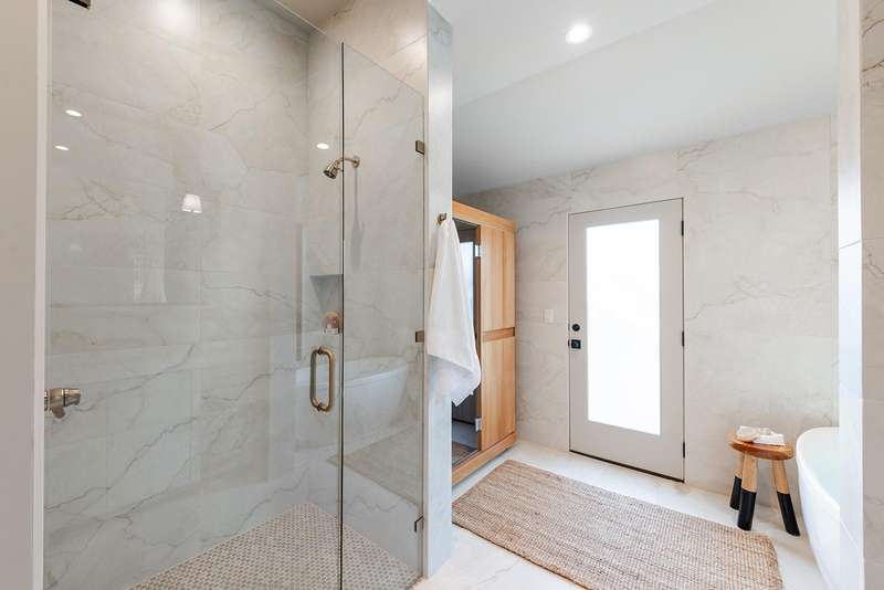 A private primary suite feels like a daily retreat and includes a dry sauna, spa shower, and plunge tub (future pool permitted if preferred and in 80 days).