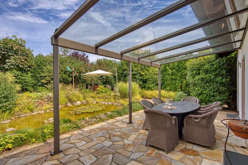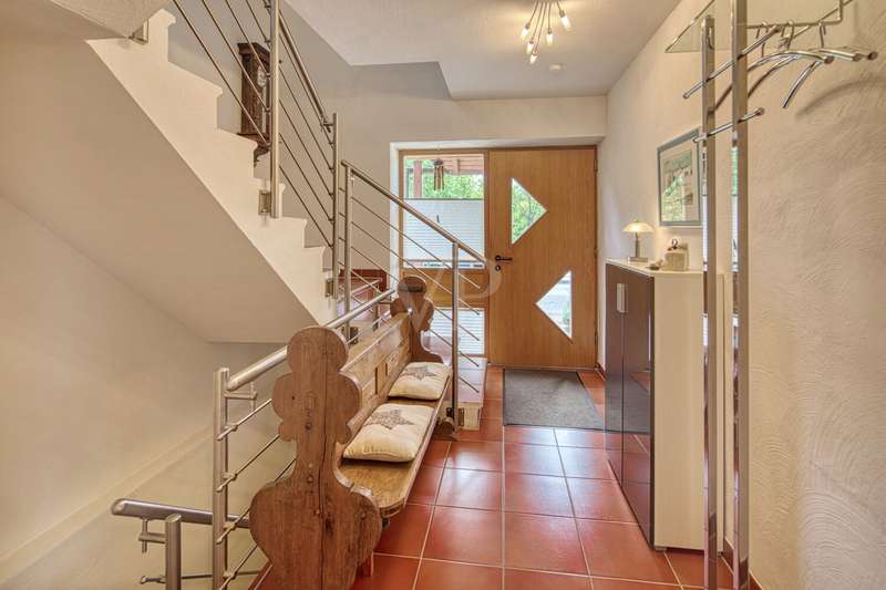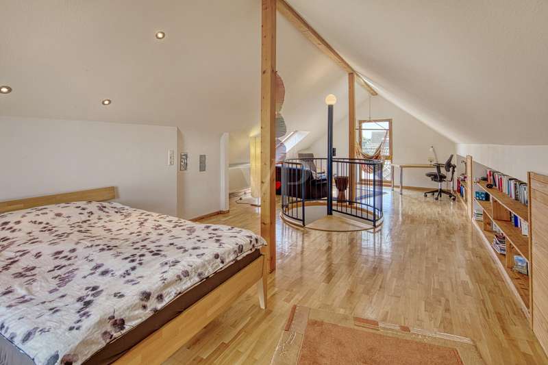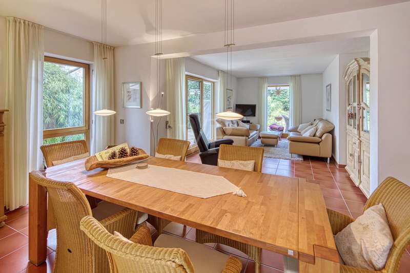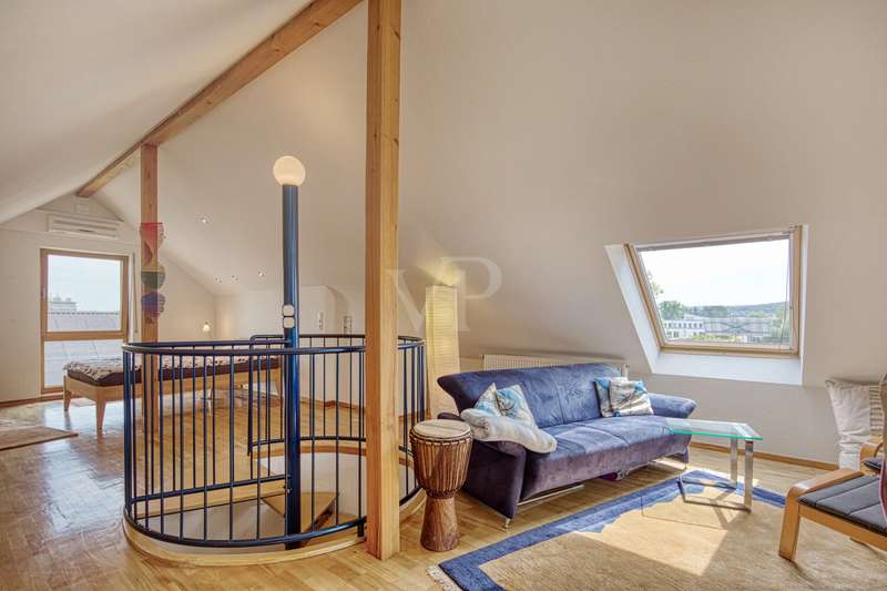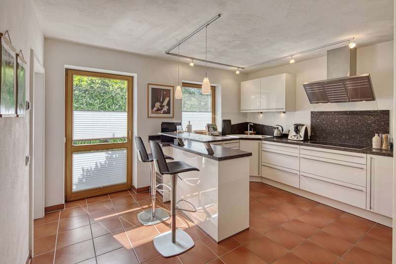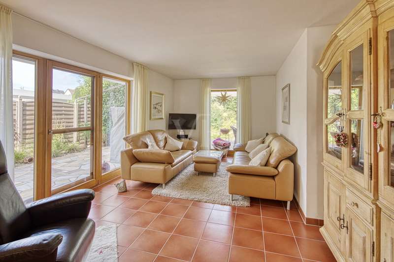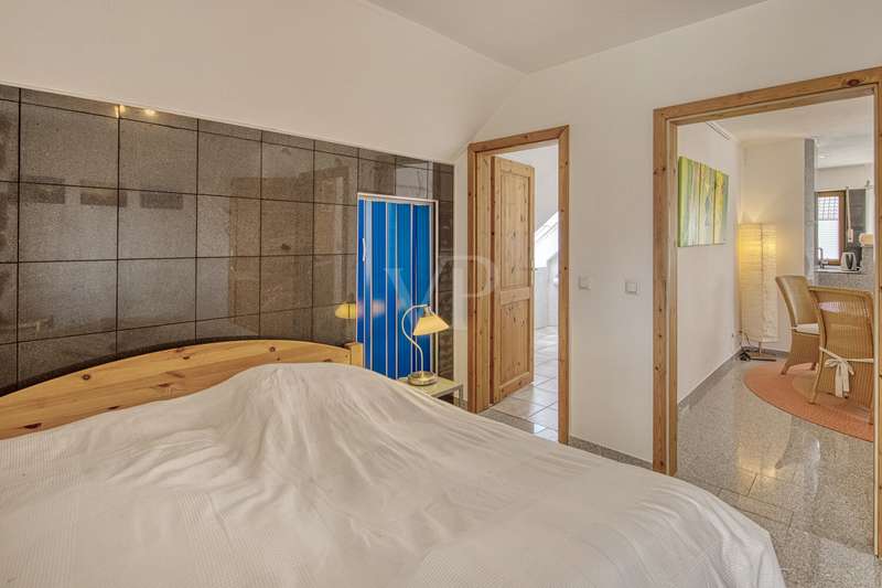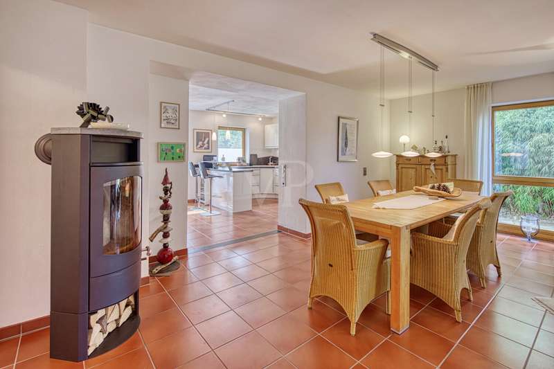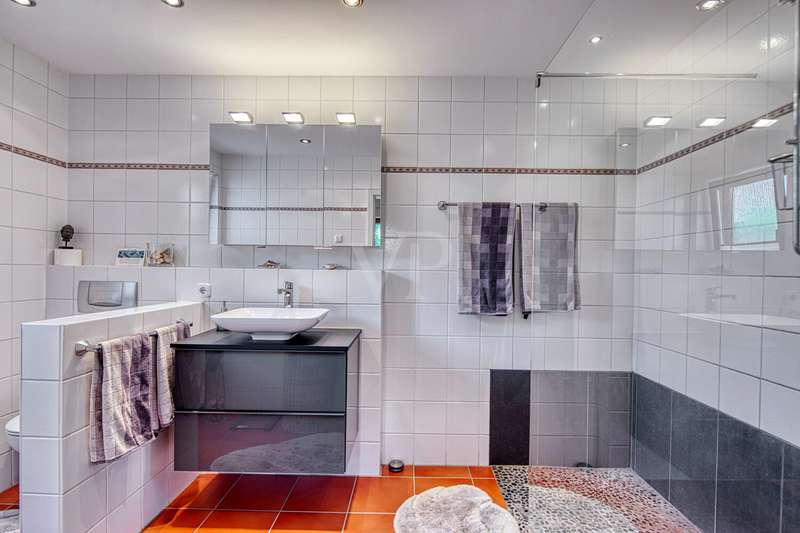 VON POLL Immobilien Euskirchen presents this high-quality, detached two-family house from the year 2000 on a spacious plot of approx. 636 m² with a hidden, idyllic garden and approx. 225 m² (including terrace area) of living space. The entrance area gives you access to the attic and the cellar and leads you straight into the first apartment - the communicative heart of the house. Via a hallway with access to the approx. 23 m² garage and a guest WC, you reach the open-plan dining and living area with a wood-burning stove. From the cozy dining area, you reach the modern and high-quality Nolte kitchen with marble worktops and first-class Miele appliances, as well as a Liebherr wine refrigerator. The separate pantry in the kitchen is particularly practical. In addition, the kitchen has a separate entrance so that shopping can be brought there quickly from the parking spaces. The side terrace with access to the carport or the sunny, covered terrace and the beautiful garden can be accessed from the living area. The lovingly created garden pond with natural fish adds a visual accent, as does the existing planting that frames the fully fenced property. The side terrace, which is covered with a high-quality awning, and the main terrace are equipped with perfectly laid Italian polygonal quarry stones and a concrete cistern with a filter and a capacity of 7,500 liters ensures sustainable irrigation of the garden areas. There is also a spacious bedroom on the first floor with further access to the garden and a modern en-suite bathroom. This impresses with a floor-level shower and high-quality fittings. On the top floor, after passing through the glass door, two further rooms await you, which can be used flexibly as children's rooms, guest rooms or studies. These are currently used as an office and sports room. The bright bathroom for children or guests is equipped with a shower and rounds off the comfort perfectly. Particularly worth mentioning is the studio with cherry wood parquet flooring in the converted attic with approx. 35 m² as well as the converted basement with sauna, shower room, laundry and drying room and two further large rooms that can be used individually by you. This offers you the perfect home office opportunity, as all important rooms in the house have network connections with CAT 7 cabling and therefore fast Internet with up to 250 MBit/s download and up to 40 MBit/s upload is possible (source: Telekom). Another highlight is the photovoltaic system: with the PV system (9.31 kWp, built in 2012), you not only secure a sustainable energy supply, but also save money. An impressive 11,551 kWh of environmentally friendly electricity was generated here in 2022 and a remarkable 10,465 kWh in 2023. Now to the cozy second apartment on the top floor: this consists of a combined living, dining and cooking area as well as a bedroom with en suite bathroom and shower tray. This offers great possibilities: You can either pamper your guests with all-round comfort, use the house as a multi-generational home or rent out the second apartment. In short: this property is a high-quality, detached two-family home that is absolutely impressive thanks to its spaciousness, flexibility and comfort. If this property appeals to you, please contact us via a digital inquiry. We will then send you the exposé link so that you can find out the exact location. You are then welcome to call us to arrange a viewing appointment.
