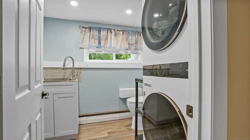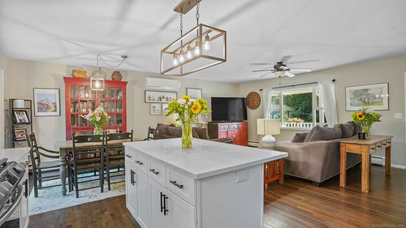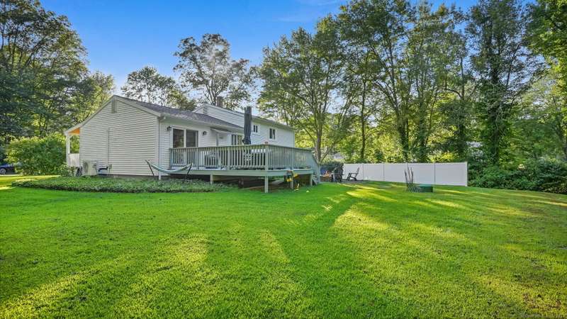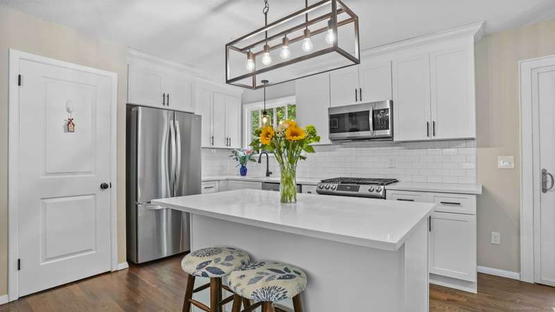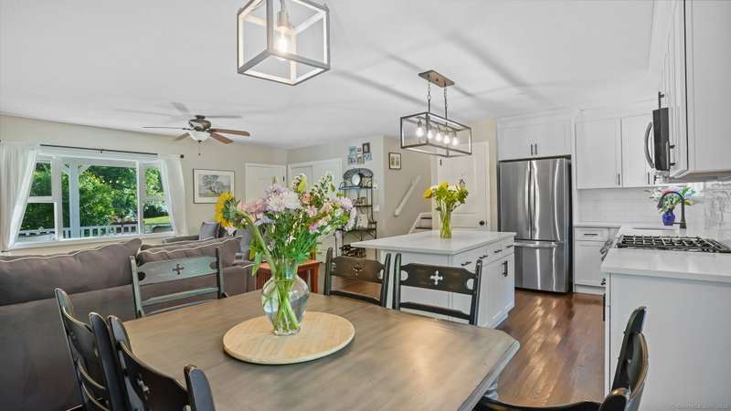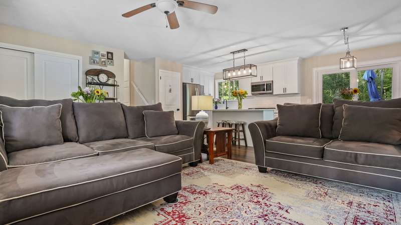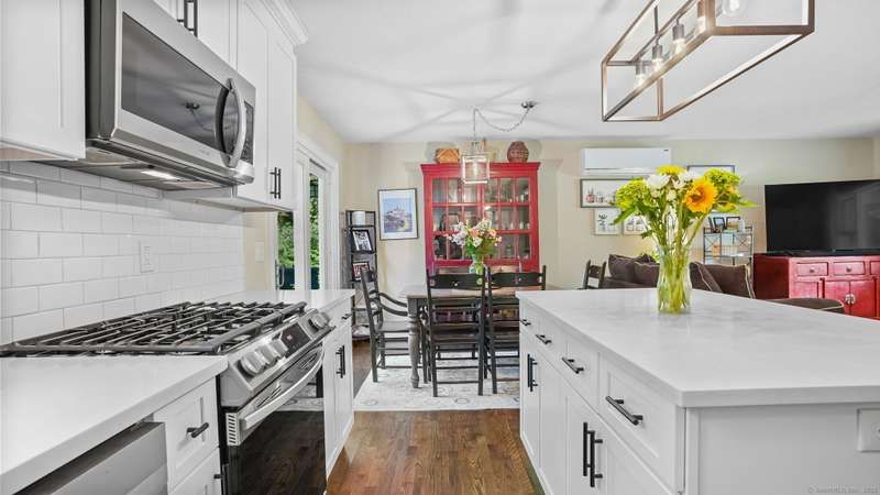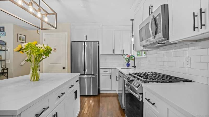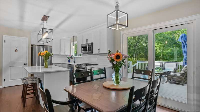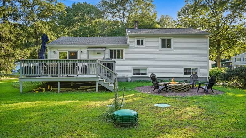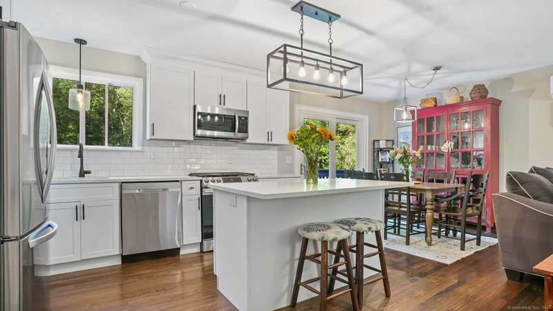 Completely renovated from top to bottom, this stunning 7-room, 3-bedroom, 1.5-bath split-level home is move-in ready & full of charm. A brand-new covered front porch welcomes you inside, where natural light pours through large picture windows & sliding glass doors, creating a bright & airy feel throughout. The main level features an open floor plan w/ gleaming hdwd fls, seamlessly connecting the LR, DR, & kitchen. The beautifully designed kitchen offers custom white cabinetry, quartz countertops, a center island, stylish decorative lighting, & high-end stainless Samsung & LG appliances. From here, step through the SGD to a spacious, private rear deck overlooking a wooded backyard w/ plenty of lawn space-perfect for entertaining & barbecues. Upstairs, you'll find 3 bedrooms & a fully updated tiled bath. The lower level offers a comfortable FR, a convenient mudroom entry, a half bath, laundry room, & access to the attached garage. Wide-plank luxury vinyl flooring adds both style and dura
