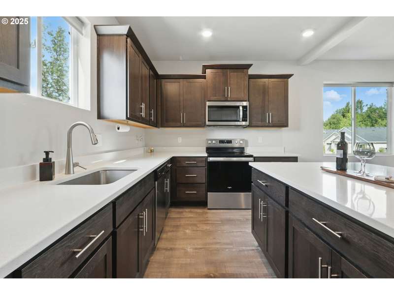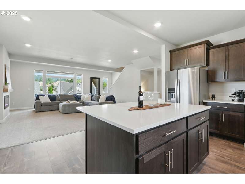 Stunning 4-bedroom, 2.1-bathroom home built in 2022, featuring a rare 4-car garage plus driveway space for 2 more vehicles and ample street parking. Situated on a premium greenspace lot in Newberg with only one neighbor, this home also backs to a peaceful park and offers breathtaking territorial views of Oregon’s wine country. The oversized 4-car garage offers tons of space for storage, ATVs, bikes, a boat, or other toys and gear. A private, screened balcony is accessible from the great room and provides a private space to enjoy the views. Home features include air conditioning, upgraded window treatments with blackout shades in all bedrooms, waterproof carpet padding, a full irrigation system, generous kitchen storage, quartz countertops, large island and electric fireplace.Located just a 3-minute walk from a retail center with Starbucks, MOD Pizza, Five Guys, Jersey Mike's, Encore 77 Taphouse, OnPoint Community Credit Union, a nail salon, and more. Close proximity to George Fox University and The Allison Inn & Spa. Just minutes from top-rated wineries and vineyards in Oregon’s renowned wine country.Don't miss this rare opportunity to own a move-in ready home in one of Newberg’s most desirable locations.