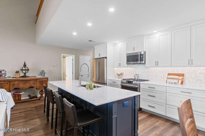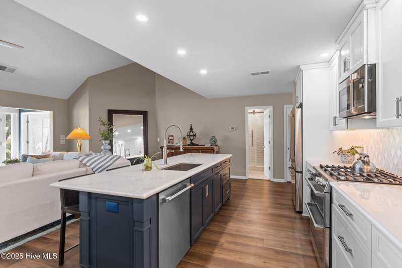 Townhouse with Panoramic Views in Lockwood Folly Country Club Incredible opportunity to own a beautifully renovated 3BR/3BA townhouse in Lockwood Folly Country Club, less than 5 miles to Holden Beach! Enjoy breathtaking views of the Intracoastal Waterway, Lockwood Folly River, ponds, and golf course from multiple rooms and outdoor spaces. The open kitchen and living room feature vaulted ceilings, fireplace, and a chic coastal design. The stunning kitchen boasts abundant backlit cabinetry, extended counters, a large island with seating, and a bar area all finished with premium quartz countertops, designer lighting, and custom hardware. On the main level, a bright guest bedroom offers water views and a walk-through closet to a stylish shared bath. The spacious lockout primary suite has a private entrance, screened balcony, and a luxurious bathroom with natural stone mosaics, a designer vanity, upgraded fixtures, and two closets (one previously a kitchenette that could be converted back). Upstairs, the third bedroom/loft includes a fully updated bath with designer tile, a large linen closet, and generous storage. The ground level offers two heated/cooled flex rooms, perfect for office, lounge, or hobby space, plus direct access to a private patio ideal for entertaining, lounging, dining, and grilling. A deep garage provides additional storage. Community amenities include: award-winning golf, clubhouse with restaurant & banquet room overlooking the water, outdoor pool, fitness center, tennis, pickleball, basketball, bocce ball, cornhole, library, game room, boat ramp, fishing pier, and storage for boats, RVs & jet skis. This golf cart & dog-friendly community is close to shopping, fresh seafood, and nearby islands like Oak Island, Ocean Isle & Sunset Beach. Just 35 miles to North Myrtle Beach and 45 miles to Wilmington. Experience upscale coastal living at Lockwood Folly!