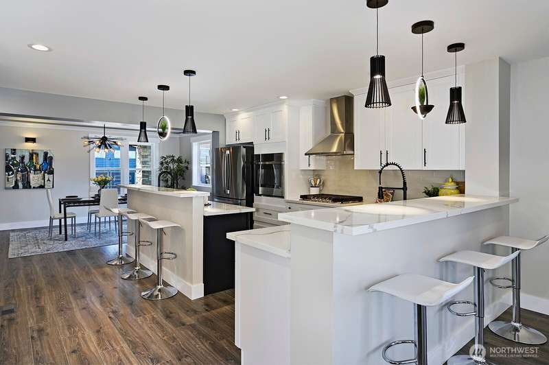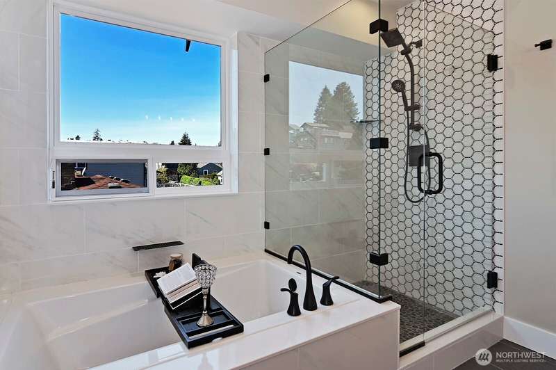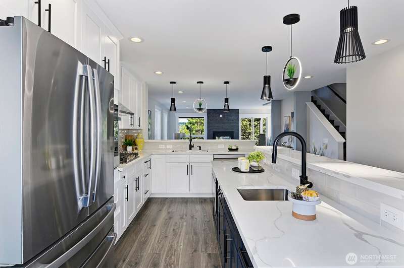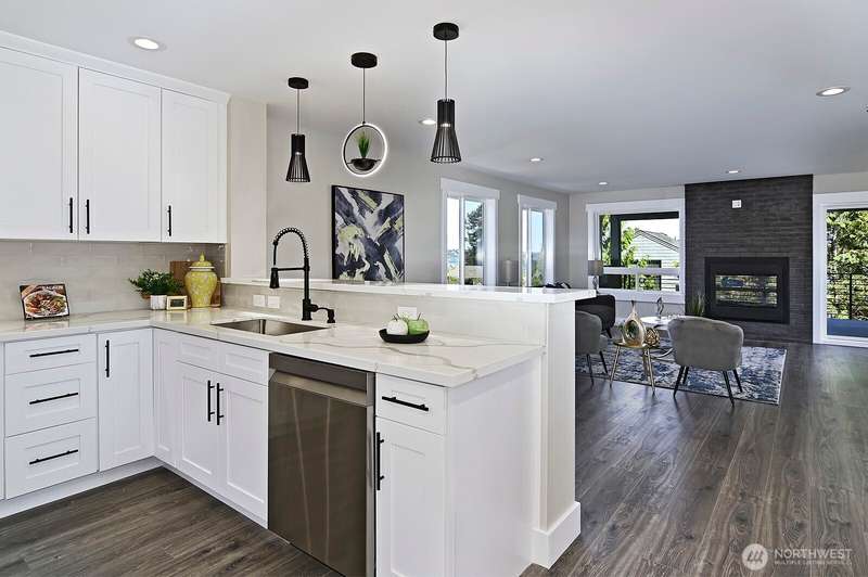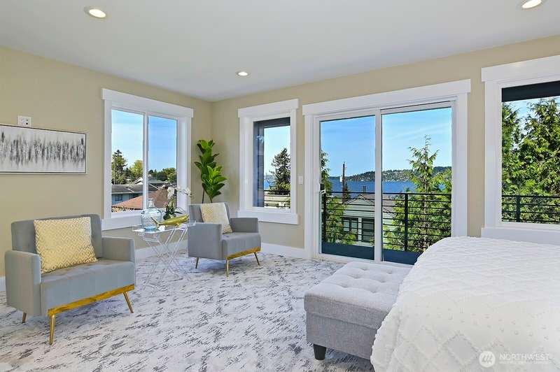 Huge price drop. Finishing touches have just been completed on this entertaining-centric 4Br/4Ba new home. Designed and meticulously crafted by detail-oriented builder features panoramic view stretches from Seattle skyline, to Lake WA and Renton Airport. Multiple view decks provide extensive outdoor living spaces. Second kitchen adjacent to rooftop deck allows for service convenience. Sumptuous primary suite offers designer walk-in closet system and beautifully appointed 5-piece bath. Notable highlights include intercoms on all upper floors for communications and remote door opening. Coax/Cat6 prewired to all TV/computer outlets. HVAC system boasts 2 gas furnaces to ensure consistent heating & cooling throughout the 3,260 sqft dwelling.
