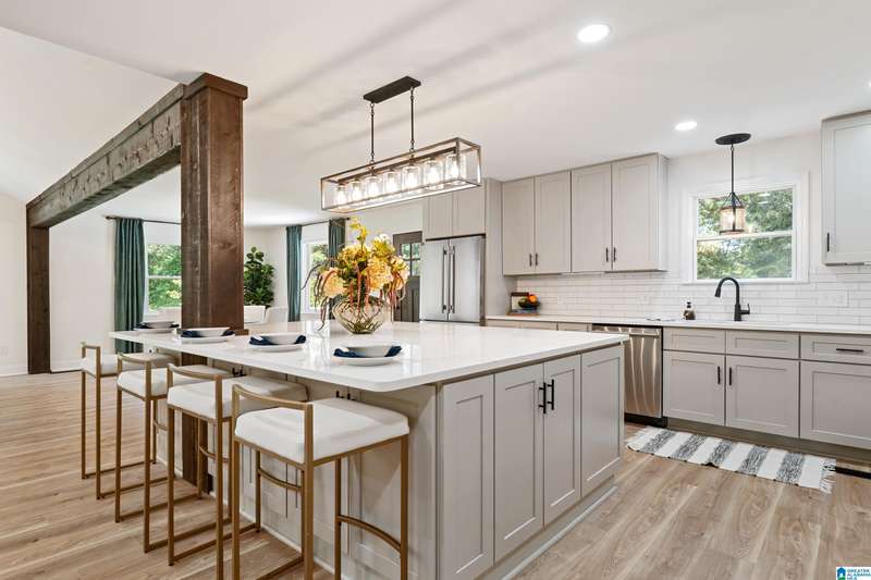 Discover a beautifully renovated 4BR/3BA home on 5 private acres in Odenville, AL—perfect for buyers seeking an updated home, acreage, and peaceful St. Clair County living. This modern country property features a chef’s kitchen with a 36-inch gas range, quartz countertops, stainless appliances, a spacious island, and a butler’s pantry. Enjoy updated lighting, durable LVT flooring, and a primary suite with a custom tile shower, double vanities, and walk-in closet. A new back deck overlooks level land with fruit trees, blueberry bushes, and muscadine vines. The detached 2-car garage with power and plumbing is ideal for a workshop or hobby space. Major systems—including roof, HVAC, and water heater—have been updated for true move-in readiness. Convenient to Trussville, Moody, Pell City, and Birmingham, this Odenville property offers exceptional value and standout acreage.