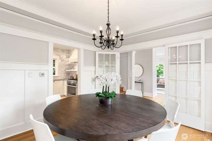 Timeless charm meets modern luxury in this meticulously restored 1912 Ellsworth Storey Craftsman. This 4+ Bed / 3+ Bath home has been beautifully renovated from top to bottom. Kitchen & Bathrooms feature elegant finishes, premium fixtures & appliances with a hint of European flair. Formal living & dining rooms offer classic appeal & plenty of space to entertain. 2 bedrooms up, 1 on the main & 1 on the finished lower level—complete with TV room, laundry, storage, & flex space. Outside, enjoy meandering garden paths and blooms that lead to a detached, fully permitted studio/cottage—ideal for guests, work, or creative pursuits. A rare blend of architectural significance and comfort just blocks from Light Rail, Lake Washington and local parks.