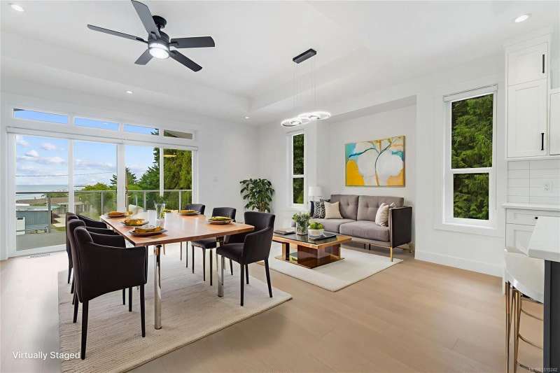 Experience stunning ocean views from this semi-custom 6-bed, 4-bath home in Hammond Bay, offering 3,230sqft of contemporary living and a 2-bed legal suite. The open-concept main level is designed for both style and function, showcasing a modern kitchen with quartz counters, stainless steel appliances, and an eat-in island flowing into bright dining and living areas with access to a covered deck. The primary suite offers a W.I.C, 4-pc ensuite, and deck access, while three additional beds, a full bath, and laundry complete the floor. A rare highlight is the private elevator—bringing comfort and convenience to every level, ideal for multigenerational families. The lower level features a spacious flex room with ensuite and separate entry, plus a fully self-contained 2-bed suite for extended family or rental income. This one of a kind property includes window coverings, landscaping front and back, Solar panel and EV readiness, along with back up generator wiring.