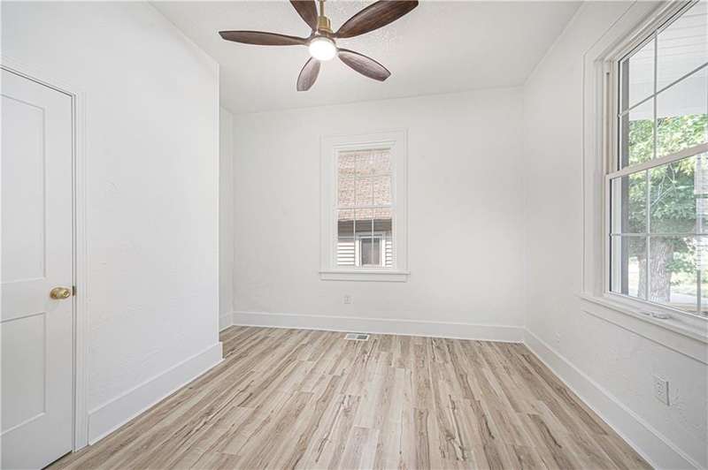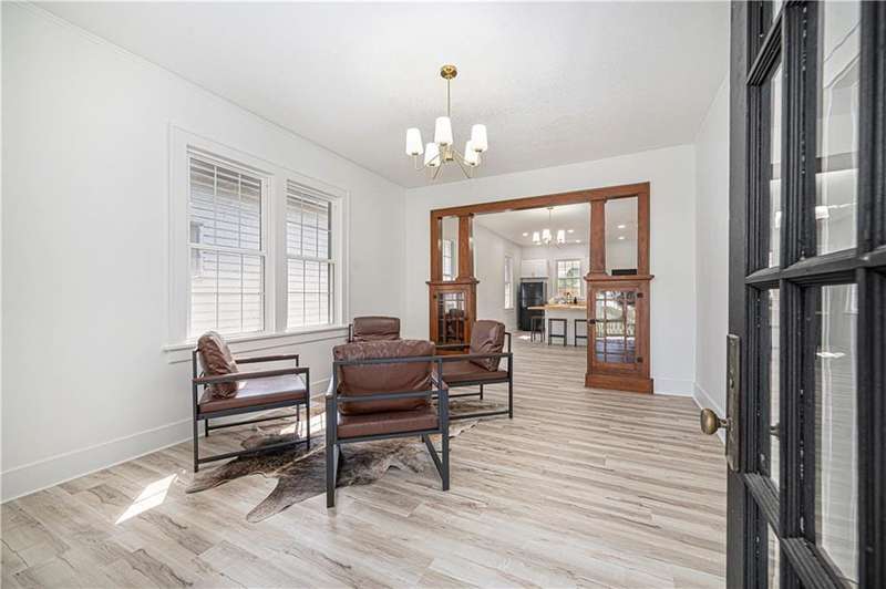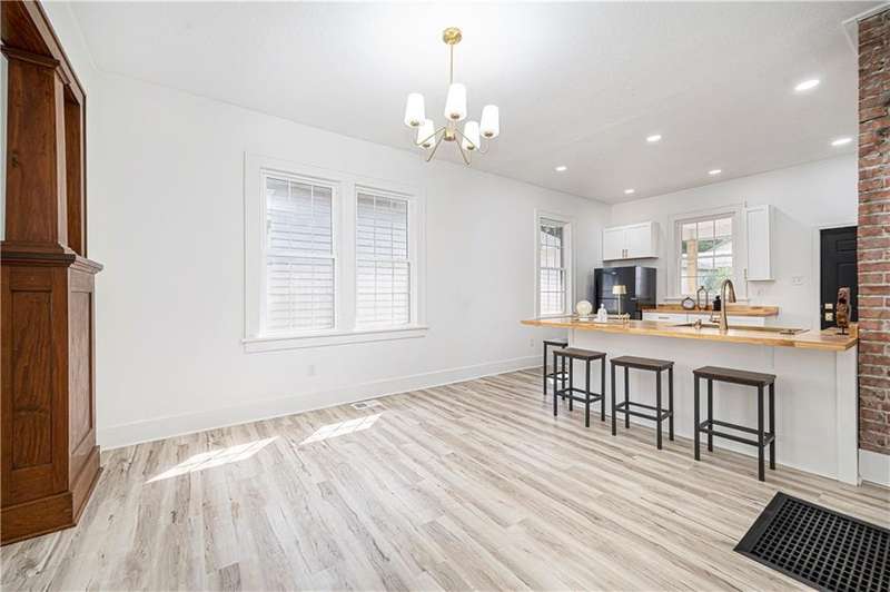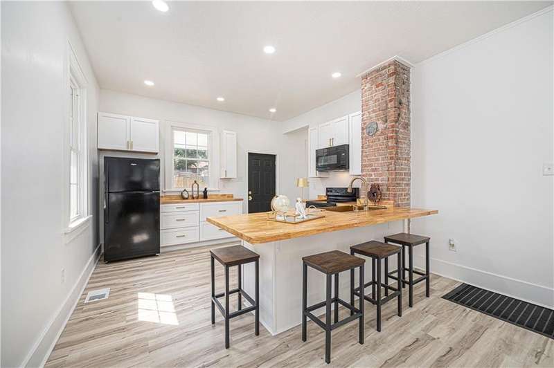 Price improvement! Charming 1931 Bungalow, Fully Rebuilt for Todays Lifestyle! Step into timeless charm with modern convenience in this beautifully rebuilt 3-bedroom, 2-bathroom bungalow. Originally built in 1931, this home has been thoughtfully renovated from top to bottom with todays buyer in mind. The exterior shines with a new roof, siding, windows, and front porch, highlighted by four stately metal-wrapped columns and the refinished original front door. Inside, youll find fresh paint, luxury vinyl plank flooring (scratch- and water-resistant), and restored original trim and built-in woodwork that showcase the homes character. The open-concept main level flows seamlessly from the living room to the dining area and into the kitchen. Two spacious bedrooms with ceiling fans and high ceilings are on the main floor, along with a full bathroom featuring a vanity with gold accents and a shower/tub combo. The kitchen is a true showpiece with butcher block countertops, new black appliances, crisp white cabinetry, brushed gold hardware, and a bartop with seating for four. An exposed brick accent wall adds a touch of original character. Step out the back door to a cozy porch, privacy-fenced yard, new gravel, and parking for up to four vehicles. Upstairs, discover a spacious primary suite with a walk-in closet and en-suite bathroom complete with double vanities and a shower/tub combo. The refinished basement offers additional living space, perfect for a media room, playroom, or home office, along with laundry hookups. Additional updates include a new HVAC system, hot water heater, and all-new plumbing, giving you peace of mind for years to come. If youve been searching for a home that blends historic charm with modern upgrades, this is the one you wont want to miss!