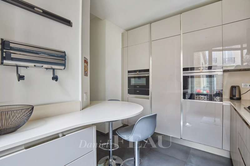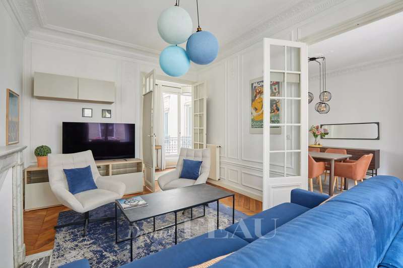 Lebon Market neighbourhood. This 98 sqm dual-aspect apartment benefiting from an excellent floor plan with no wasted space is on the 4th floor of a magnificent early 20th century building with a lift located near the shops, the market and Pereire Promenade. Bright and in mint condition, it includes a south-west facing living/reception room and dining room, an equipped kitchen with dining facilities, two bedrooms, a walk-in wardrobe, a shower room/wc, a bathroom and a separate wc. Ample fitted storage space. With a cellar.