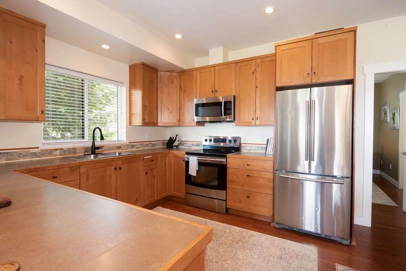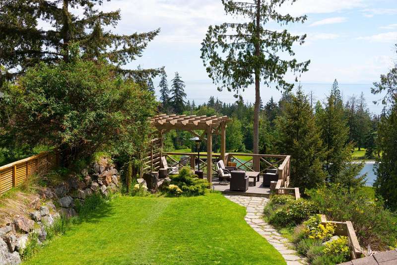 If you enjoy golf, walking trails, & sunshine, this is the spot for you. Perched right above hole 8, and the driving range/performance centre just beyond, you can access the golf course, and the trails surrounding it, from your backyard. This is a location where you feel like you are on vacation all year round. From the backyard patio take in the distant views of the Salish Sea, and relax among the multitude of birds that reside in the neighbouring forests. The main floor features an open plan living/dining/kitchen, with a built-in BBQ just outside. The primary bedroom, with ensuite is also on the main floor. Upstairs is a self-contained 2 bed/2 bath guest suite. Live upstairs and rent the main floor, or vice versa - a great opportunity to get into the Bowen market, with a mortgage helper.