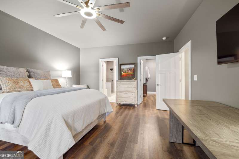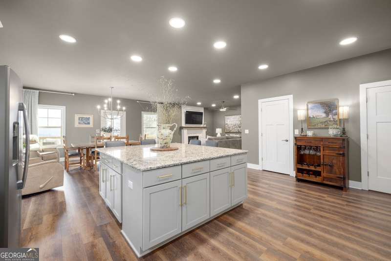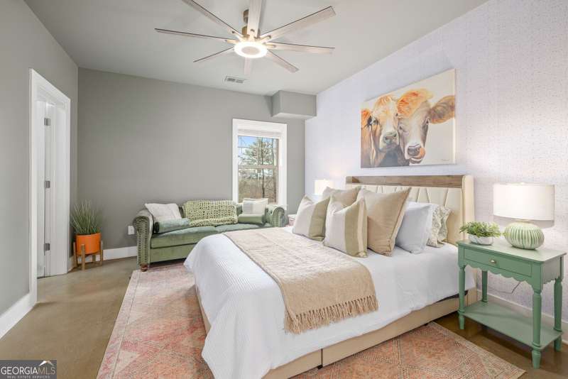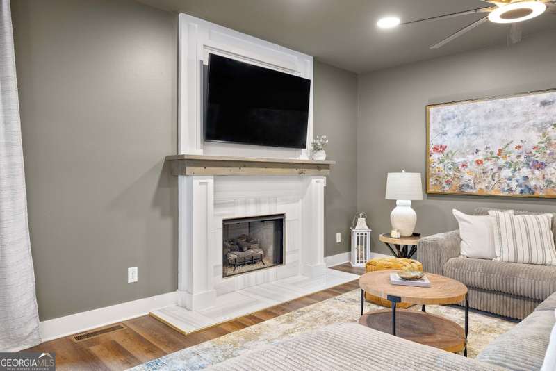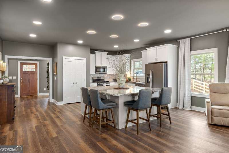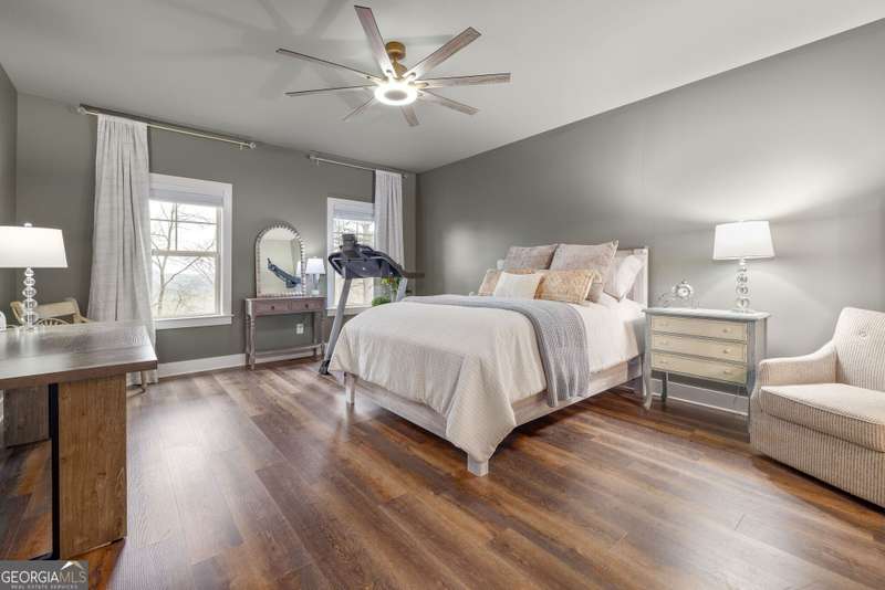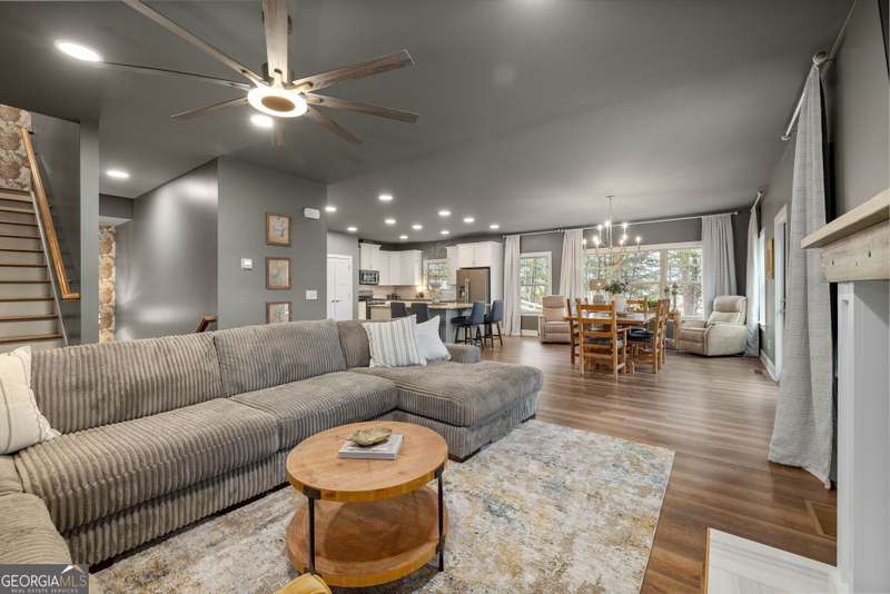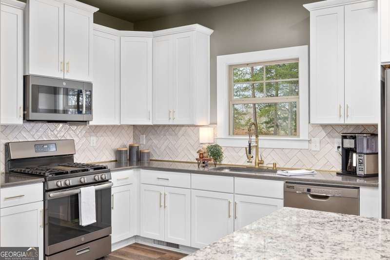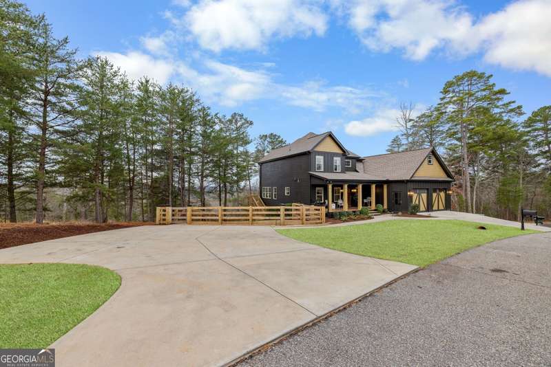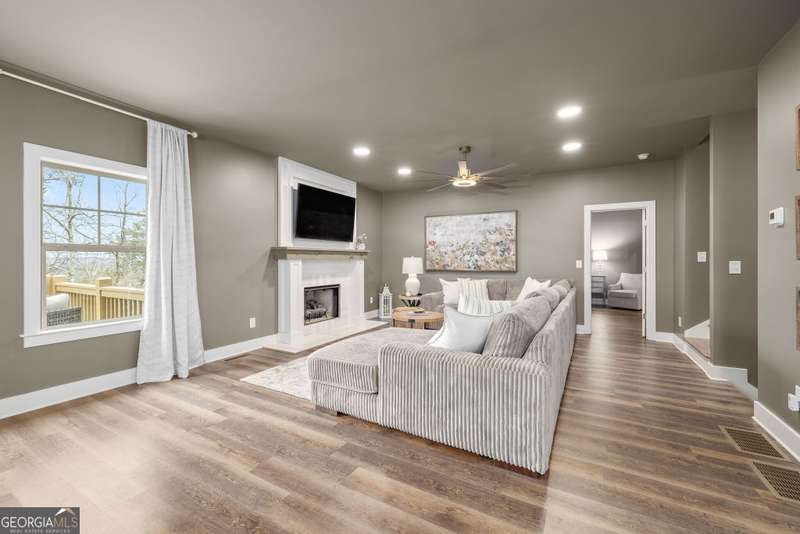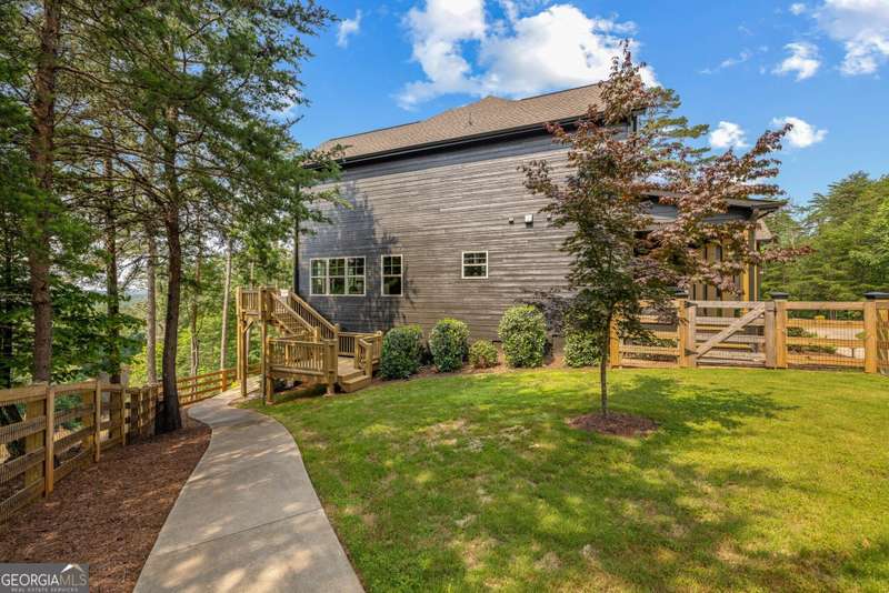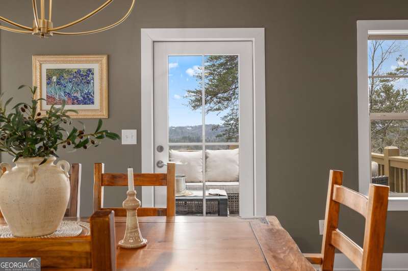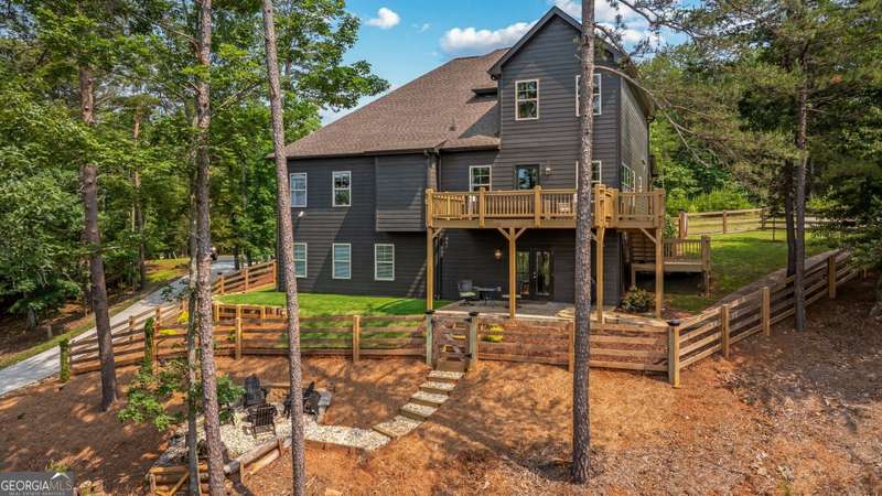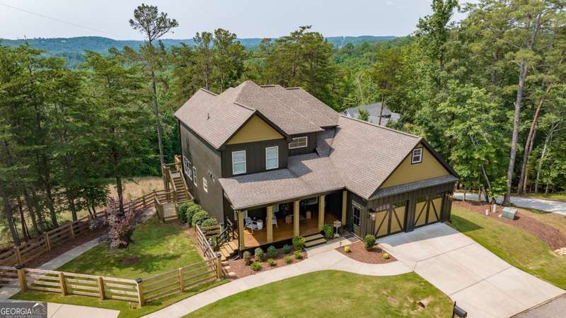 Offering a unique blend of contemporary design and gorgeous mountain views, all located in the gated community the Overlook at Crown Mountain, just minutes from the heart of Dahlonega. This newly renovated home offers an open concept main living space with mountain VIEWS from nearly every room. Upon entering, the unique monochromatic interior welcomes you inside. The kitchen crafted with function and design in mind- an oversized island offers ample workspace while still allowing guests to gather around and enjoy the setting. Exotic granite countertops line the perimeter of cabinetry while the center island offers a contrasting granite for design interest. The dining space can accommodate a long dining table overlooking the view. Just off the dining space, a seamless flow to the living room centered around a custom marble fireplace surround. Enjoy the upgraded light fixtures throughout, with dimmable lighting with nightlight feature found throughout the entire home. The primary suite on the main level is spacious with views. The en-suite showcases marble tile flooring with floor to ceiling tiled shower and separate soaking tub. Upstairs, there is a loft/flex space that serves as a second living space. The two upstairs guest bedrooms have their own private en-suites and walk in closets. On the terrace level, two additional bedrooms with private en-suites and walk in closets are inviting and ready to accommodate guests. The partially unfinished space allows for creativity or function as a workshop and storage. Newly constructed back deck additions offer the perfect space to enjoy the private setting, feeling like your nestled among the mountains and overlooking the fully fenced yard. This property offers an oversized two car garage, with additional parking pad, positioned on a quiet cul-de-sac. Just 2.5 miles from the Dahlonega Square with shopping and dining, University of North Georgia, and convenient to GA 400 access.