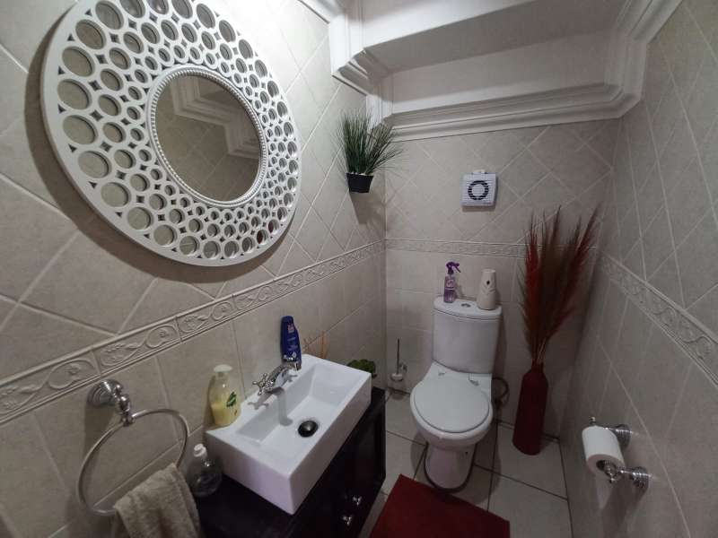 Discover the ultimate family residence in the exclusive Sonneveld Estate, boasting 24/7 controlled access for unparalleled security and peace of mind. Spacious Interior - 4 generous bedrooms - 2 modern bathrooms + guest toilet - Elegant lounge and dining area perfect for family gatherings - Well-appointed kitchen with ample storage - 3 Air-conditioners for those unpredictable cold or hot weather days Outdoor Oasis - Sparkling swimming pool - Lush gardens with stunning cycad trees Additional Features - Double garage - Generator for seamless load shedding transition (built-in) - Study/office space - Intimate balcony upstairs - Auto-timer on pool for electricity efficiency - 2 x geysers with timers - Wendy house for garden tools - CCTV cameras (4) linked to your phone for added security Prime Location - Close proximity to Mall@Carnival and Carnival City - Easy access to major highways Experience the epitome of family lifestyle in this secure, luxurious haven!
