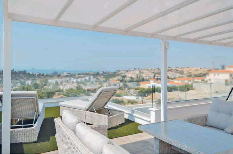 These gorgeous villas are located high up in Moutayiaka, a quiet residential area, just a 10-minute drive to the coast, with easy access to the downtown areas and the highway. Designed in the modern cubist style, these splendid detached houses aesthetically complement each other, yet each is uniquely different. Each house includes spacious bedrooms, luxurious en-suite and bathrooms, a huge living area, and a covered sun terrace and first-floor balcony. Outside, there is a beautiful secluded swimming pool surrounded by landscaped gardens, and owners will enjoy the pleasures of the summer barbecue area. There is also secure, off-road covered parking.