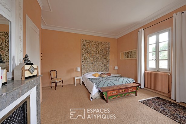 The residence offers eight bedrooms, several of which are on the ground floor and most with private bathrooms, allowing you to welcome family and friends in the greatest comfort. Further on, an annex living room with a fireplace, adorned with a magnificent antique floor, as well as a dining room with refined decoration and a second equipped kitchen, add charm and elegance to the whole.