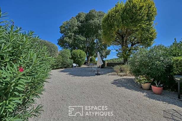 From the entrance, the private park, its ancient trees, the unobstructed view, and the small, intimate courtyard adorned with a pretty fountain reveal all the magic of the place.