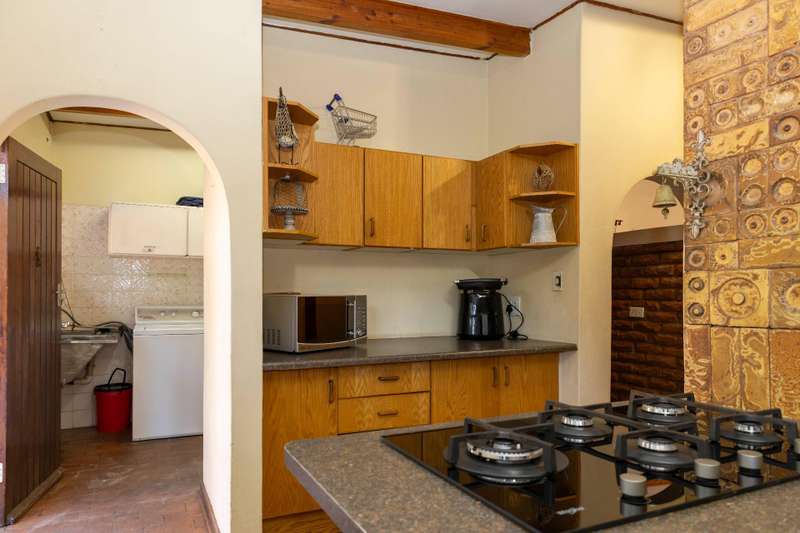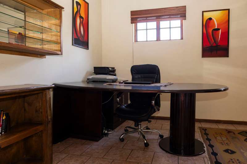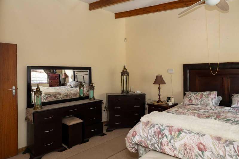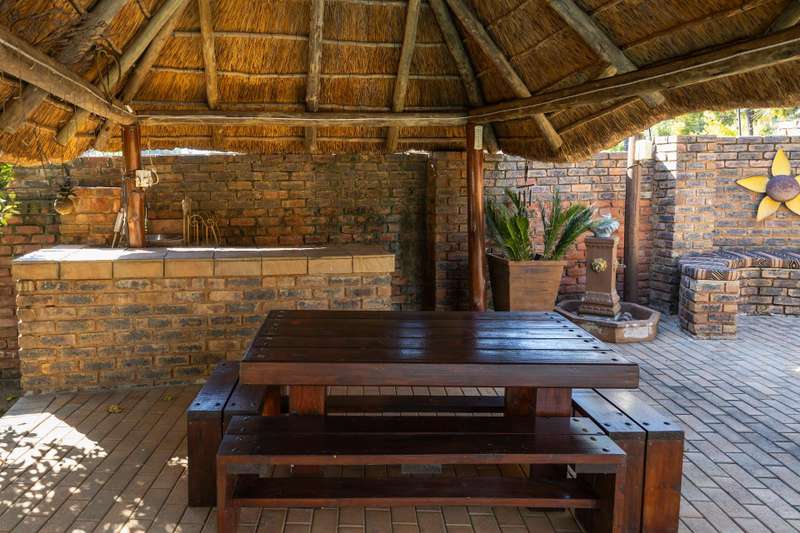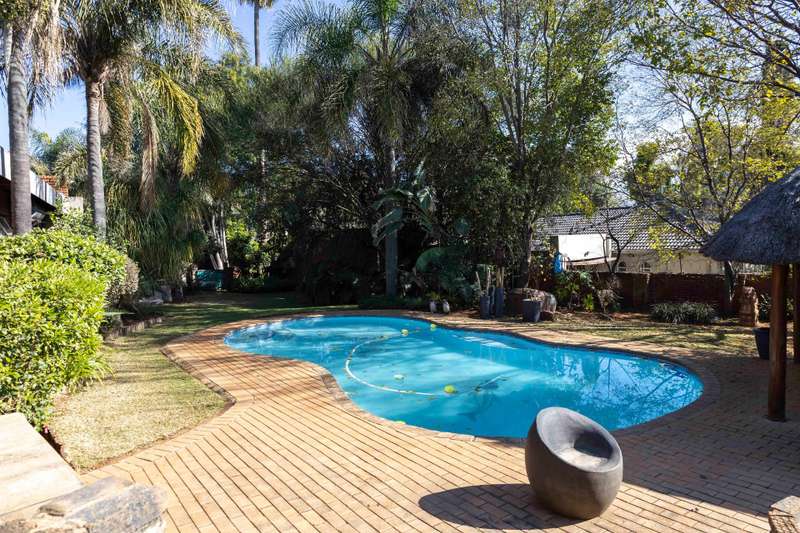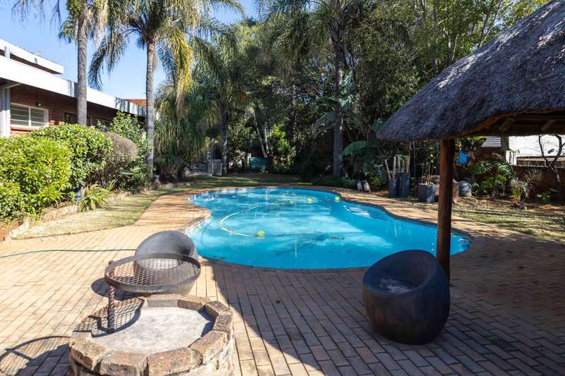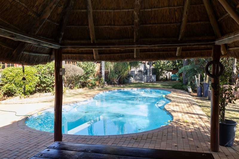 WARM AND INVITING FAMILY HOME Fabulous family home on a large corner stand, offers 4 bedrooms and 3 bathrooms, with the main en-suite and a Jack and Jill bathroom. There is also staff accommodation with its own bathroom. Spacious open plan lounge and dining room, gourmet kitchen with granite tops, scullery, laundry area and pantry. A unique family entertainment room with a built-in braai opening onto a large landscaped garden with a sparkling pool and lapa. Ample space for the kids to play. Two convenient entrances with ample under roof parking and a double garage. Eco friendly features: This home is equipped with a water tank and pressure pump, connected to the house and a solar system. Absolutely perfect. Do not delay, com and view this beautiful home!