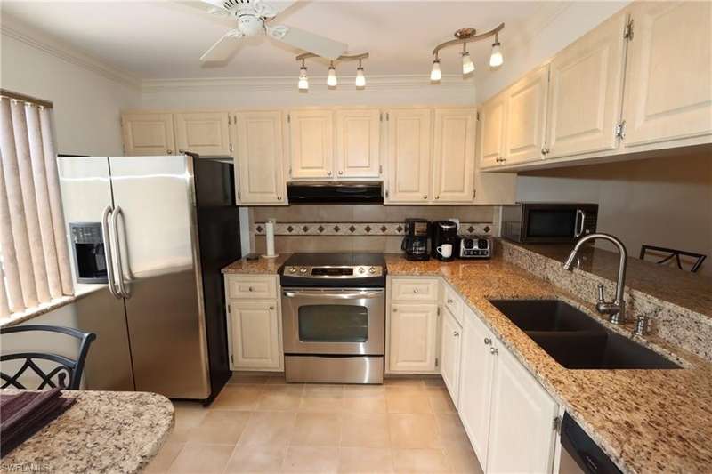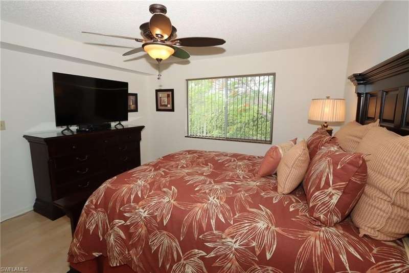 Lovely 2nd floor unit in Naples Sunrise. This 2 bedroom and 2 bathroom unit is a great getaway for the winter season. With spacious open living and dining area, flat screen TV and view of tranquil landscaped area. The fully equipped kitchen has been updated as well as the bathrooms. Master suite has a queen bed, TV, stand alone closet, and esuite bathroom with shower only. The guest bedroom with queen bed, TV and guest bathroom in same area. There is a quaint table and chairs on the front entrance porch. WIFI, cable, and laundry room are also included with this unit. Location is just a short drive to Naples Pier and 5th Avenue for fine dining, shopping and entertainment – all waiting for you to enjoy.