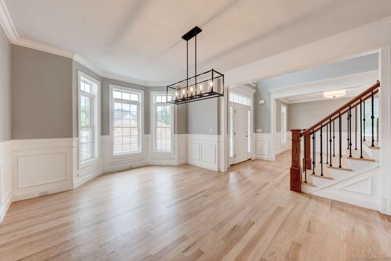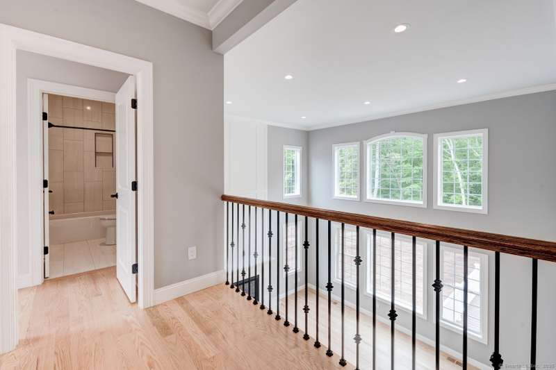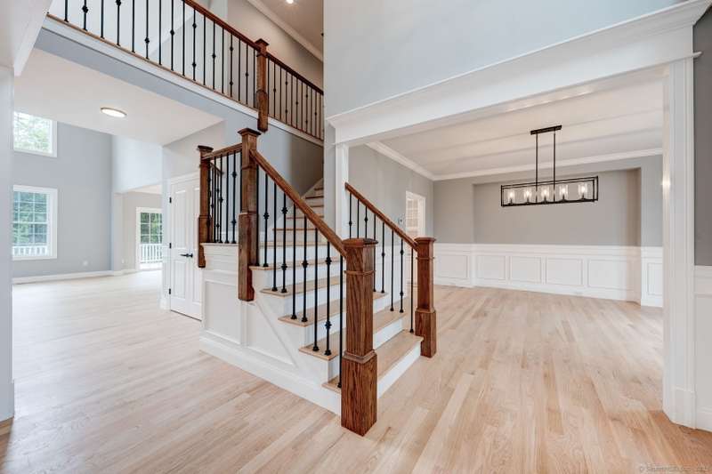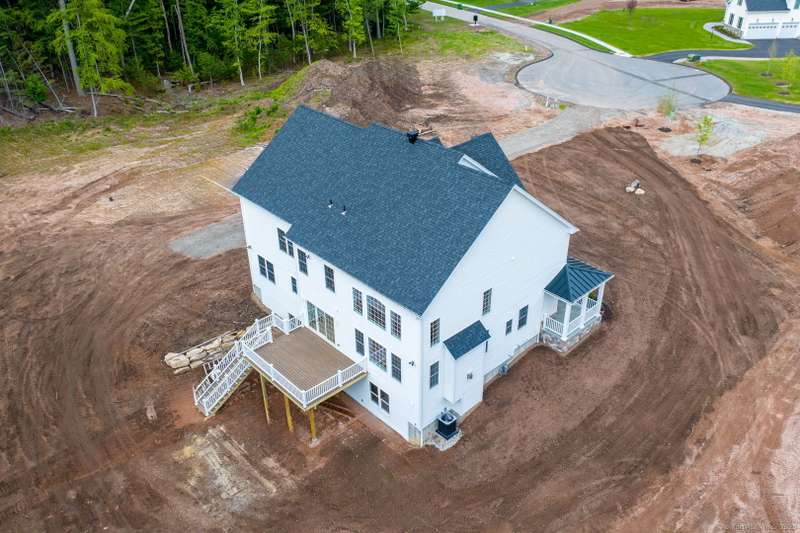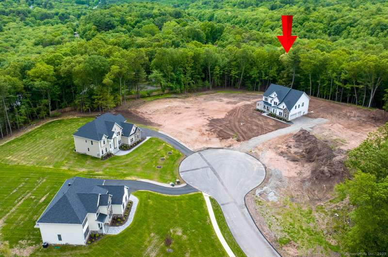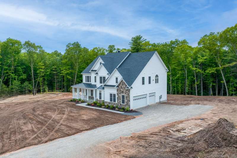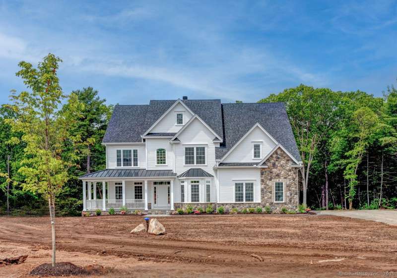 Picture perfect and fully completed New Construction Home in the highly desirable Crosby II Subdivision by Glastonbury's premier builder, Reggie Jacques! Gorgeous curb-appeal with beautiful stone veneer and elegant wrap around porch directly situated on cul-de-sac. This home offers luxury living & the perfect floorplan around a timeless design and lower level walk-out. A grand two-story foyer greets you upon entry, beginning with formal living and dining rooms positioned elegantly on either side. The dramatic family room serves as a true showstopper, w/ a soaring wall of windows and striking millwork surrounding the fireplace. The kitchen is equally captivating, features custom ceiling height cabinetry and hood, along w/ quartz countertops & blk finishes. The main level also includes a private bedroom suite, ideal for guests or the perfect office space. Upstairs, the primary suite is pure luxury w/ a serene sitting area, huge custom walk-in closet, and a spa-like bath. Three additional